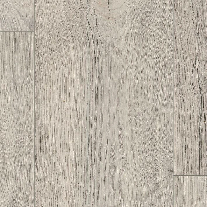 Универсальное напольное покрытие в формате классической половицы с имитацией древесины и фаской по периметру визуально неотличимо от паркетной доски. Качественная репродукция дуба в элегантной серой гамме создает в помещении атмосферу спокойствия и природной гармонии.