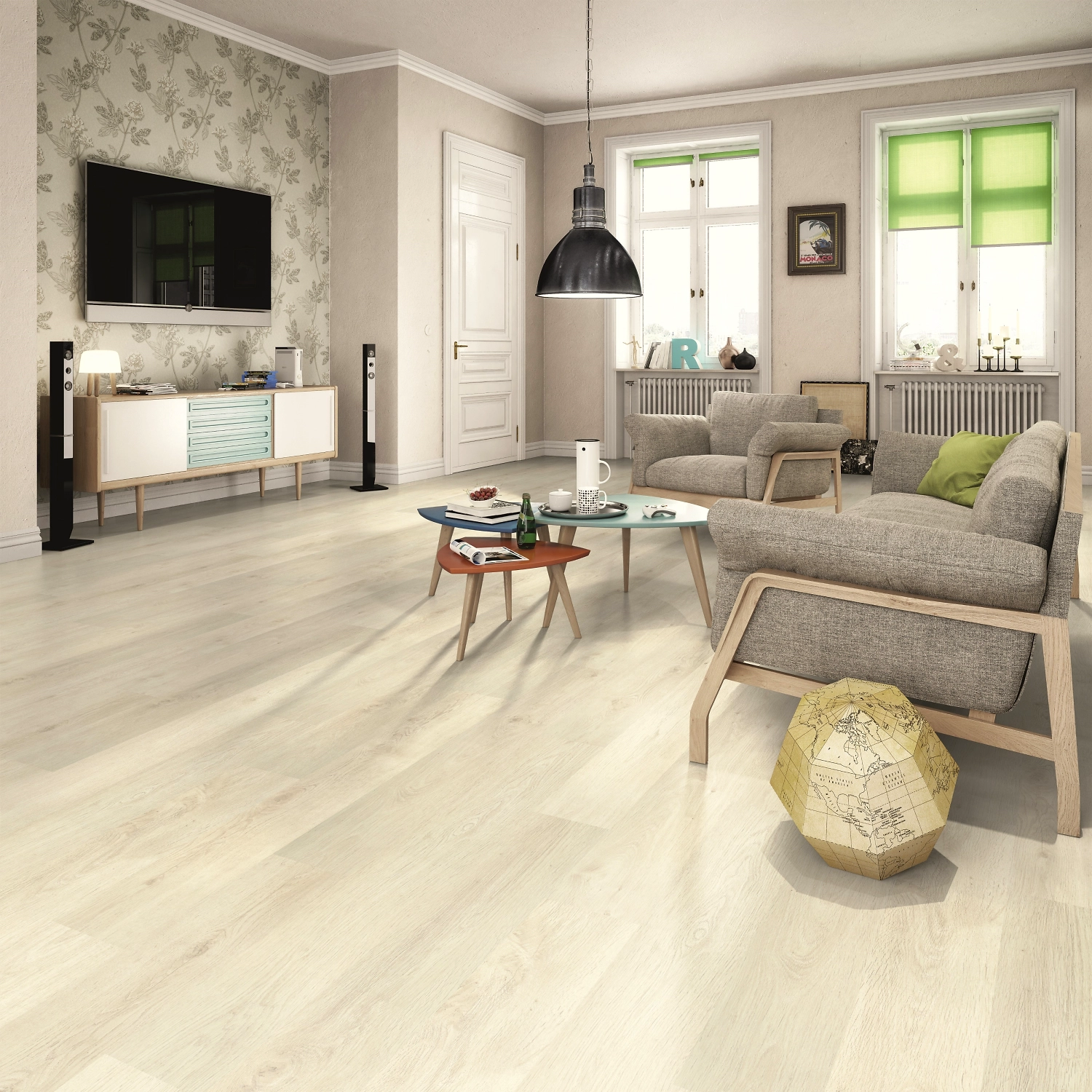 Ламинат EGGER в благородном оттенке Дуб Ривалго белый - стильное и практичное решение для оформления офисов, коммерческих помещений и частных домовладений.