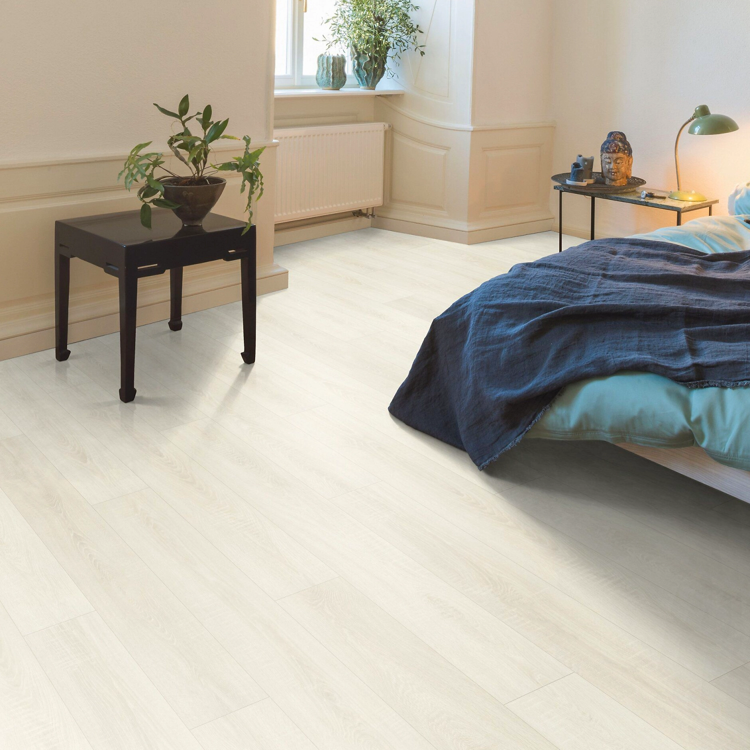 Ламинат EGGER HOME Дуб Тосколано белый - универсальное напольное покрытие в формате классической половицы с простой системой соединений. Материал 32 класса подходит для жилых комнат и коммерческих помещений со средней посещаемостью. Ламинат стильно смотрится в гостиной, спальне, детской, используется для отделки офисных кабинетов и гостиничных номеров.