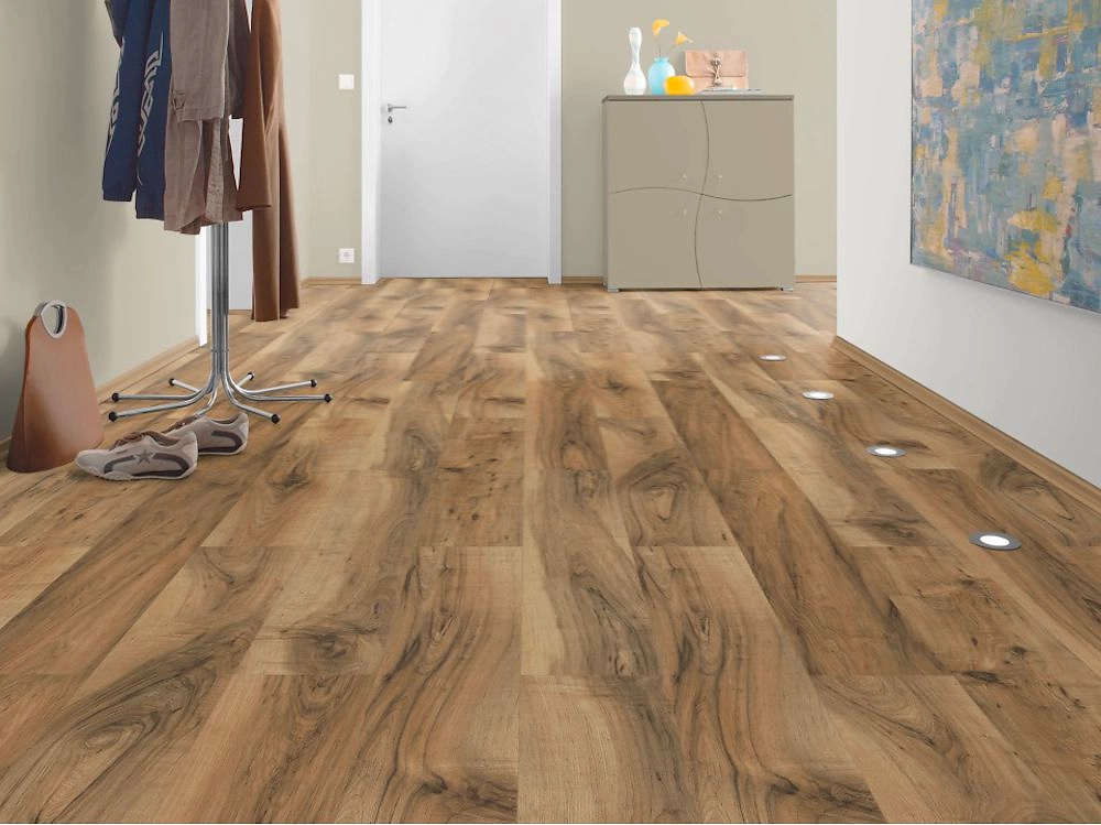 Ламинат EGGER HOME Орех Перганти коричневый - качественное напольное покрытие на основе древесноволокнистой плиты Aqua+ с высокой водостойкостью, предназначенное для кухни, коридора, ванной и других жилых помещений с интенсивной эксплуатацией и повышенной влажностью.