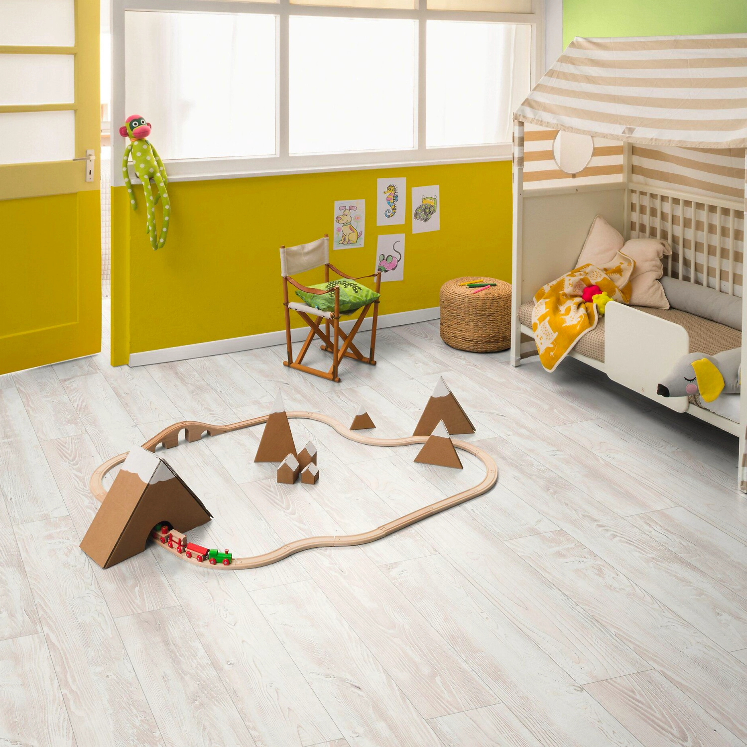 Светлое напольное покрытие, стилизованное под деревянный паркет, органично вписывается в большинство интерьерных стилей: скандинавский, минимализм, хай-тек, эко, прованс, фьюжн, неоклассика и др. Эффект дощатого пола позволяет создать в помещении уютную атмосферу и ощущение единения с природой.