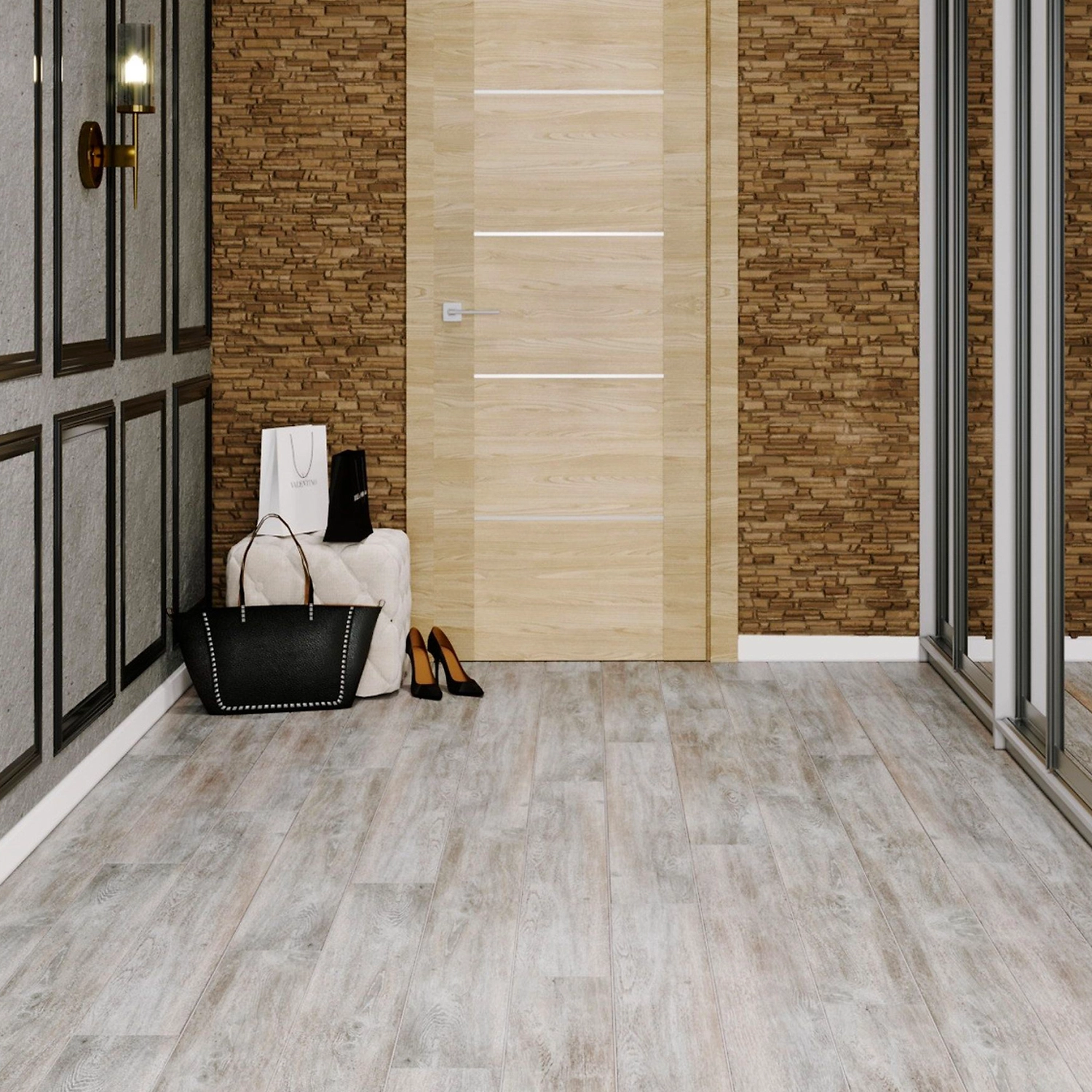 Спокойный светло-серый оттенок ламината и естественный рисунок дерева гармонично впишутся в современный интерьер в стиле эко, хай-тек или сканди. Качественно проработанное тиснение воссоздает структуру натуральной древесины, приятную на ощупь.