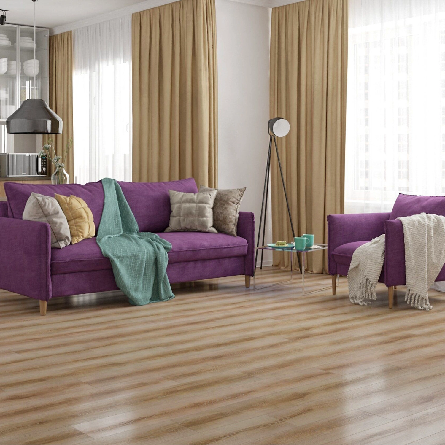 Ламинат Kastamonu FLOORPAN Indigo Дуб Гранада 32 класса эксплуатации подходит для жилых и общественных помещений с умеренной нагрузкой. Однополосный декор с тщательно прорисованной древесной текстурой гармонично вписывается в современный интерьер, хорошо сочетается со светлыми стенами и мебелью.
