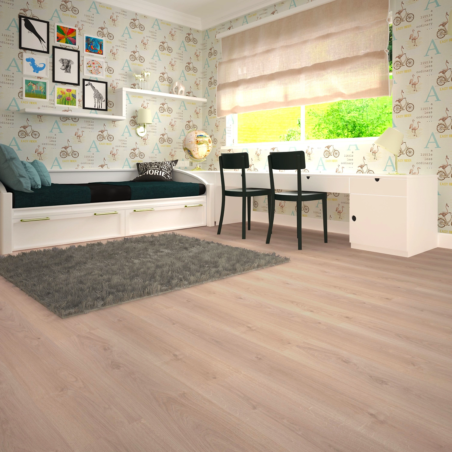 Половицы песочного оттенка смягчают интерьер, делают его “теплым” и уютным. Имитация дубовой доски прекрасно вписывается в большинство стилей, включая модерн, минимализм, кантри и др.