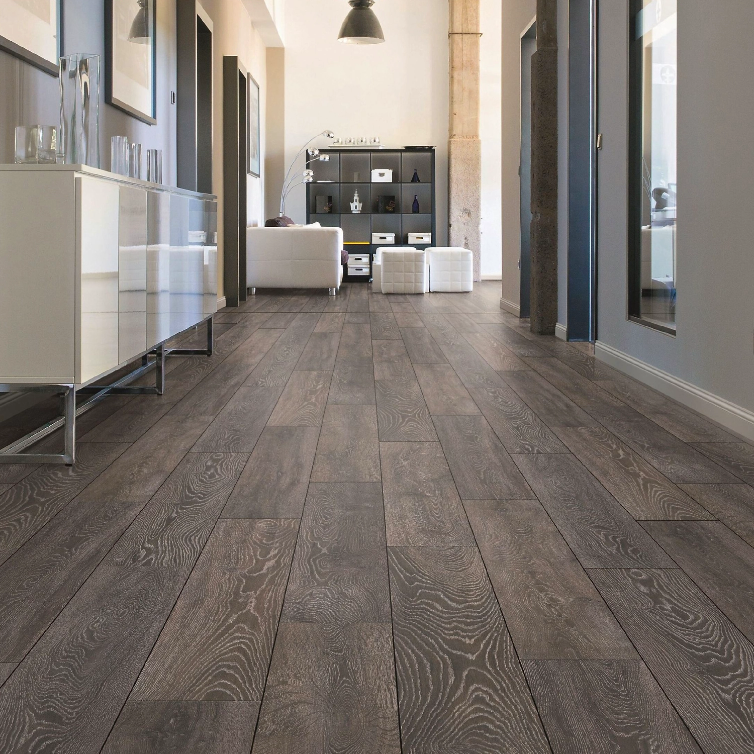 Текстурированная поверхность ламината практически неотличима от натуральной древесины. Темные дубовые половицы выглядят дорого и эффектно, придают интерьеру аристократическое благородство.