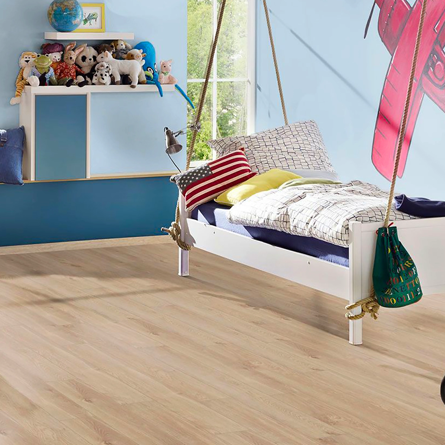 - Ламинат не боится ударов, защищен от воздействия ультрафиолета.
