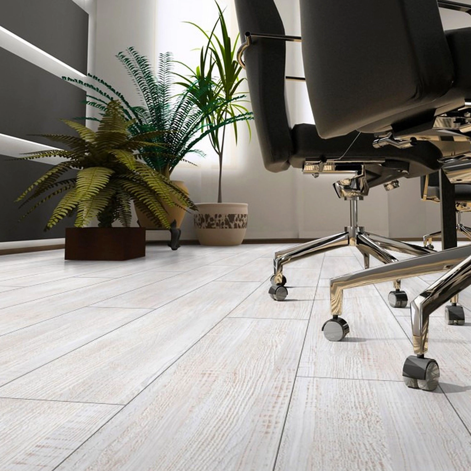 Рисунок и рельеф поверхности имитируют натуральную выбеленную древесину. Светлое напольное покрытие делает помещение зрительно более просторным, освежает интерьер, подходит для стилей сканди, минимализм, лофт.