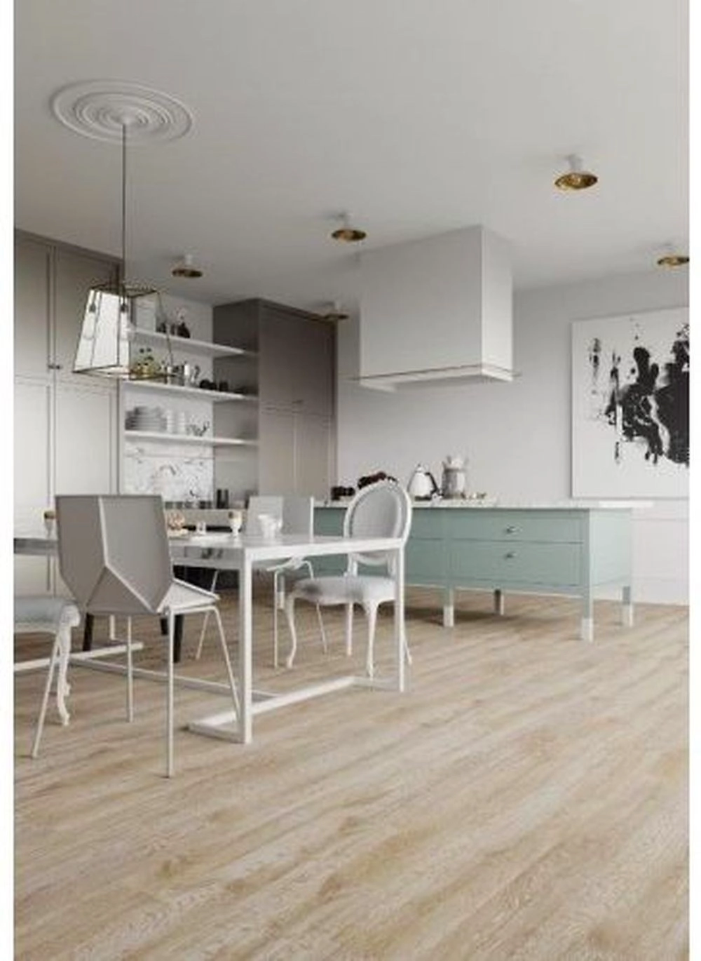 Ламинат трендового бежевого оттенка с матовой поверхностью и фаской по периметру практически неотличим от натуральной доски дуба. Светлый оттенок создает ощущение легкости и природной гармонии, визуально расширяет границы помещения. Декор отлично вписывается в дизайн в стиле минимализм, сканди, лофт, природный или прованс, позволяет при желании обновить интерьер без замены напольного покрытия.