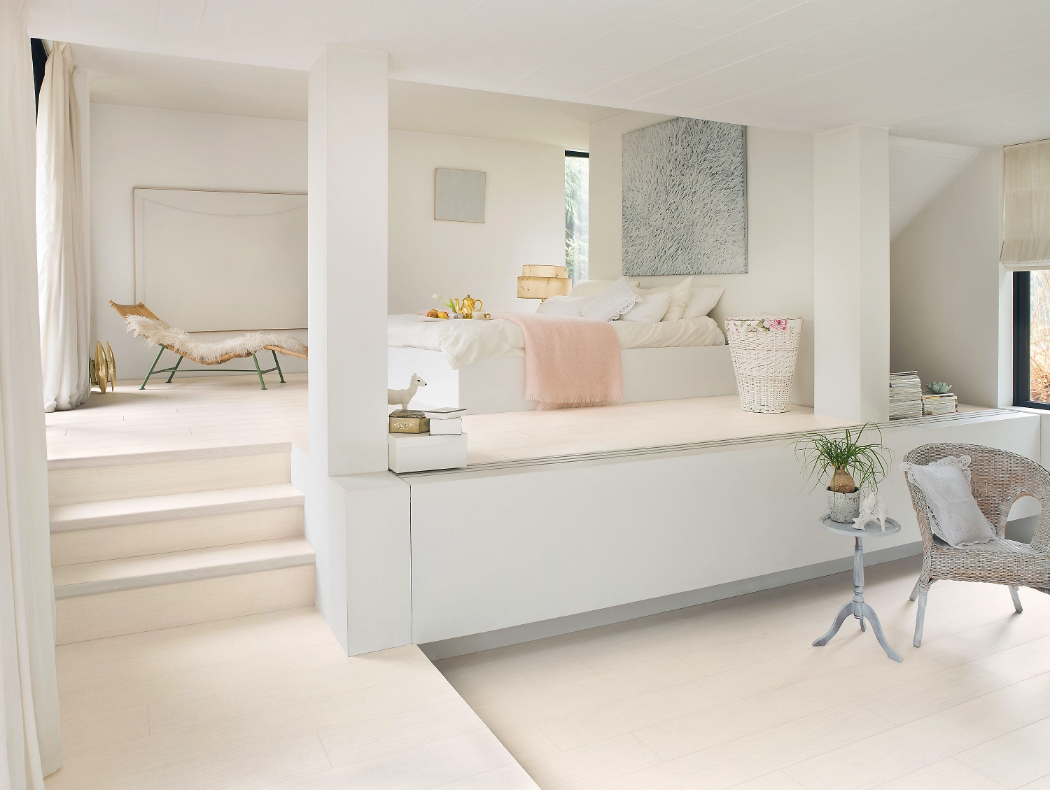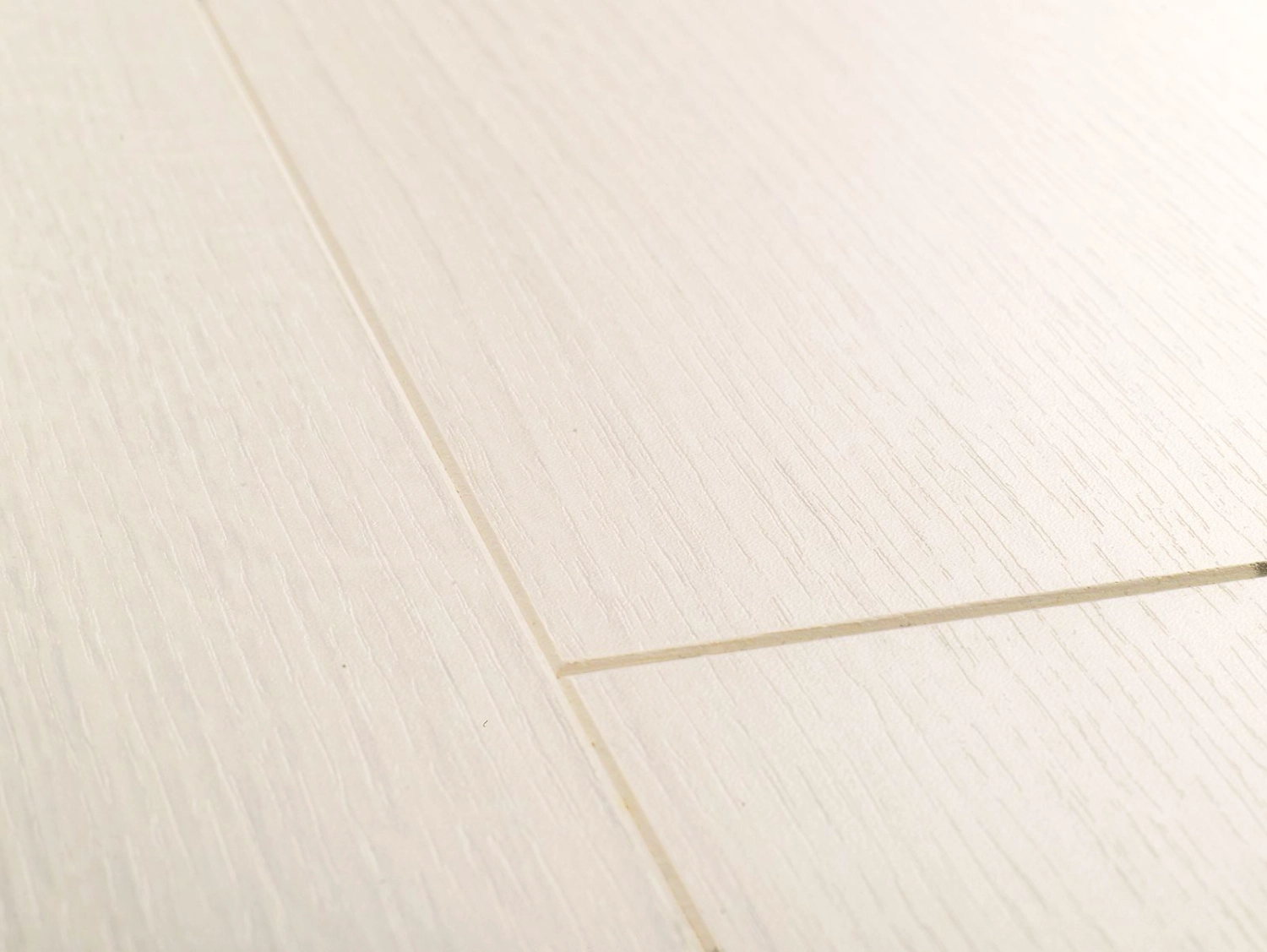 Ламинат Quick-Step – это красивое и элегантное напольное покрытие белого цвета с бежево-серыми нотками. Изделие будет прекрасно смотреться как в маленьких помещениях, визуально расширяя их, так и в больших, придавая им еще больше света и воздуха.