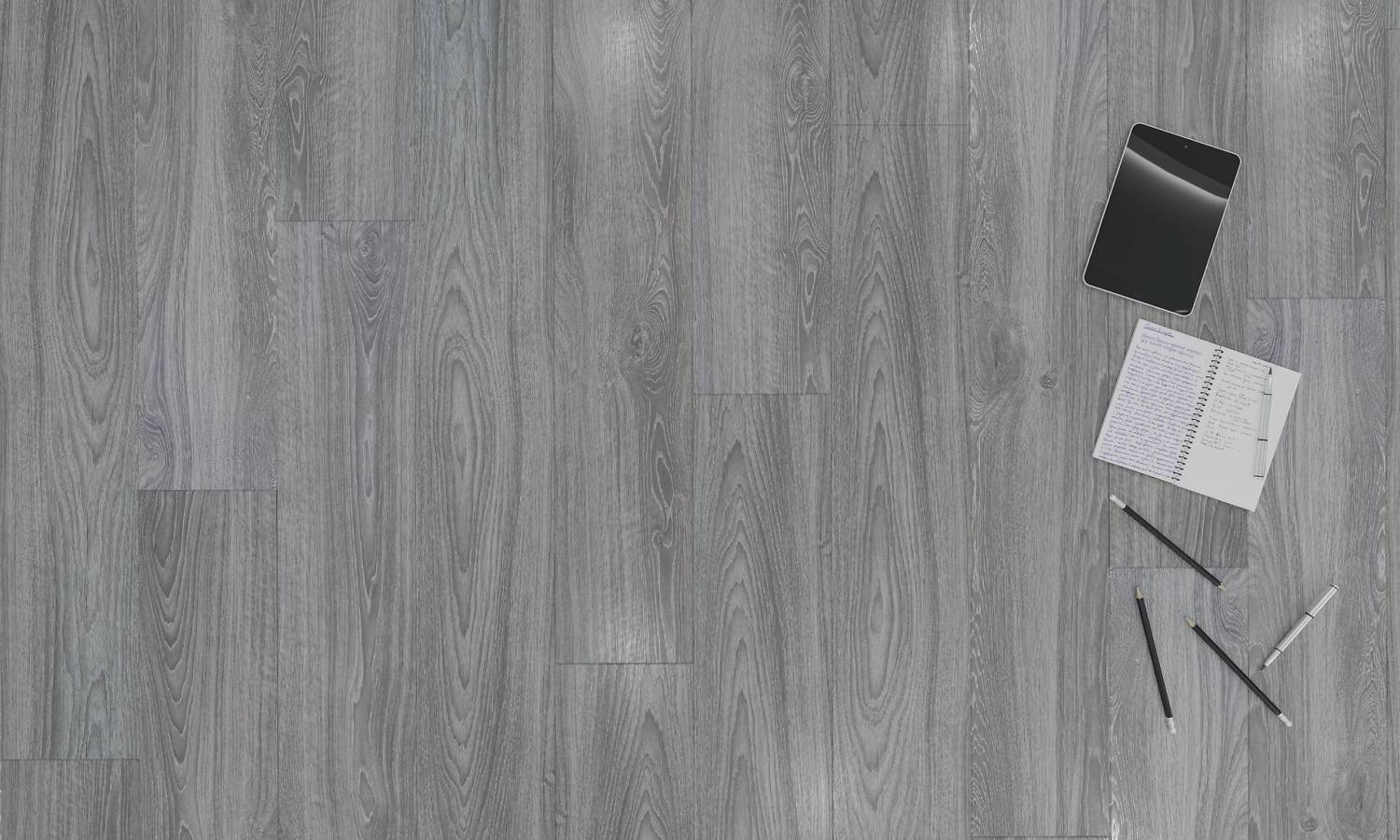 Серое напольное покрытие смотрится благородно, рустикальное тиснение придает интерьеру особый шарм. Ламинат вписывается в стили дизайна лофт, хай-тек, современный или скандинавский.