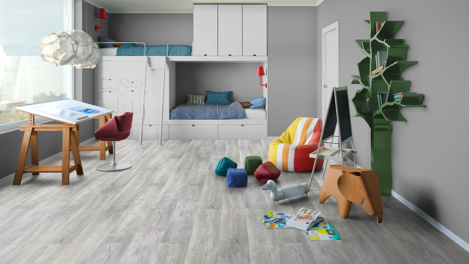 Ламинат Tarkett FIESTA Pine Andante устойчив к загрязнениям, воздействию ножек мебели, роликовых кресел и каблуков.
