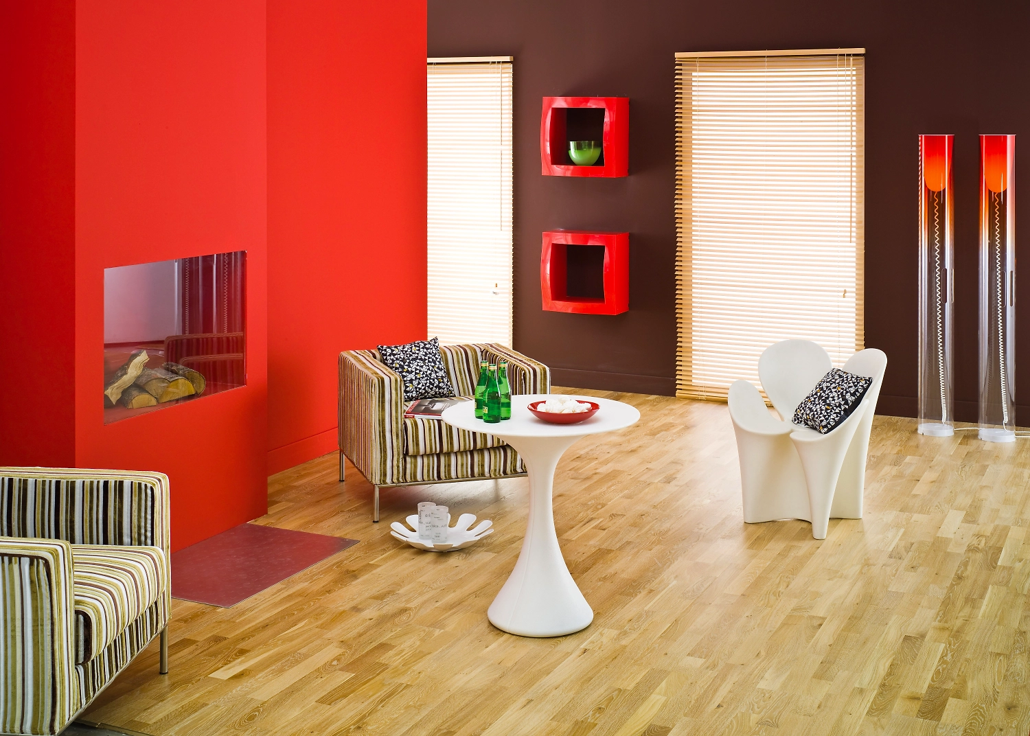 Дубовый пол с трехполосным рисунком поверхности прекрасно впишется в большинство интерьеров. Светлое покрытие визуально расширит границы комнаты, сделает акцент на контрастных предметах декора.