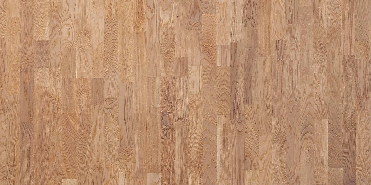 Трехполосный декор отлично смотрится в помещениях любой площади. Мелкие плашки создают интересный рисунок, способный стать главным украшением интерьера. Покрытие имеет фактурную брашированную поверхность, отличается неоднородным цветом и присутствием сучков. Многообразие оттенков древесины уравновешивает белый матовый лак.