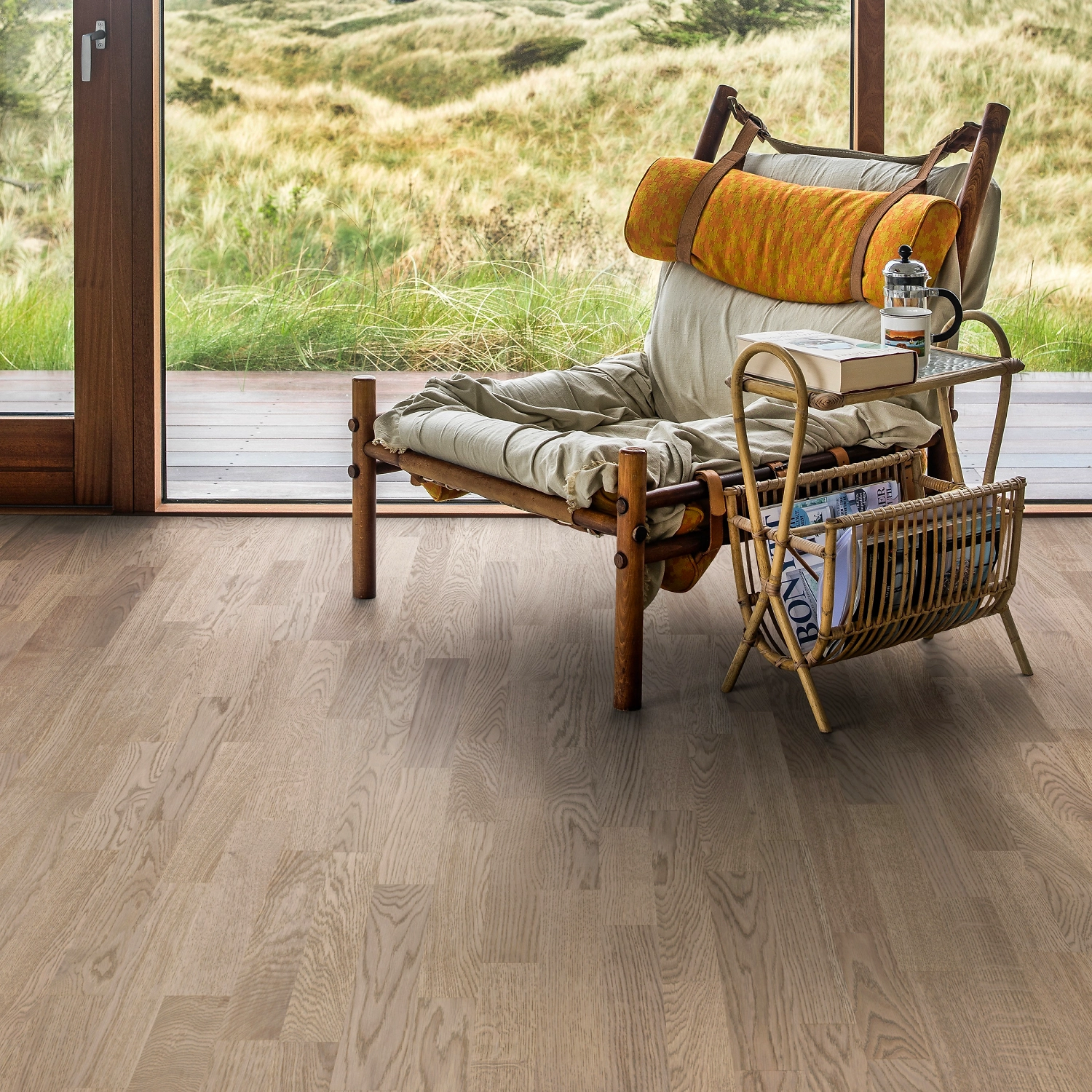 Планки подобраны методом селекции “Робуст”, имеют выразительный древесный узор и слабые отличия по оттенкам. Легкое браширование поверхности делает текстуру верхнего слоя визуально и тактильно более насыщенной. Каждая планка имеет уникальный природный рисунок, поэтому готовое покрытие по-настоящему неповторимо.