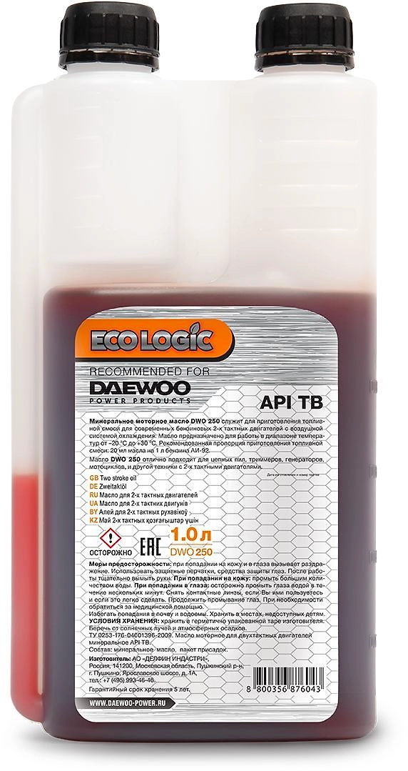 2-тактное масло DAEWOO Ecologic DWO 250 1 л с дозатором