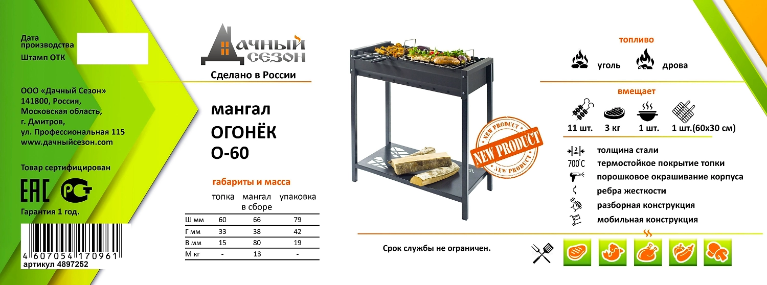 Мангал стационарный Огонёк 66х38х80 см