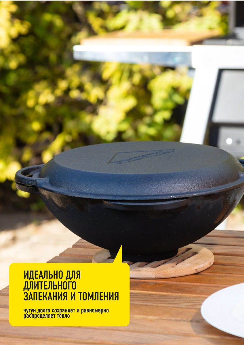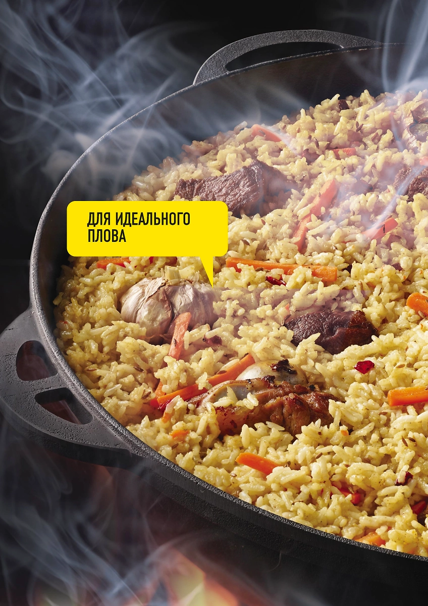 Чугунный казан-ВОК предназначен для приготовления плова, супа, рагу и других блюд, приготовляемых в масле или жидкости.