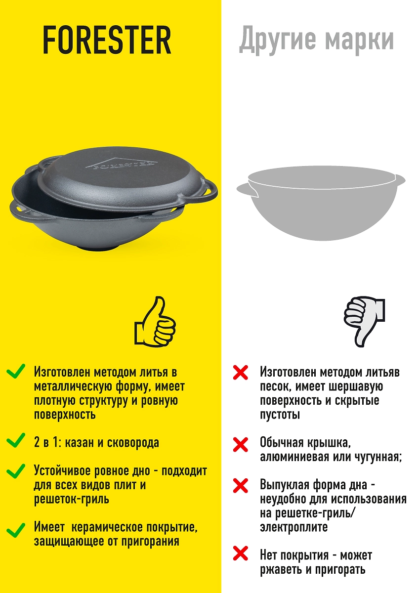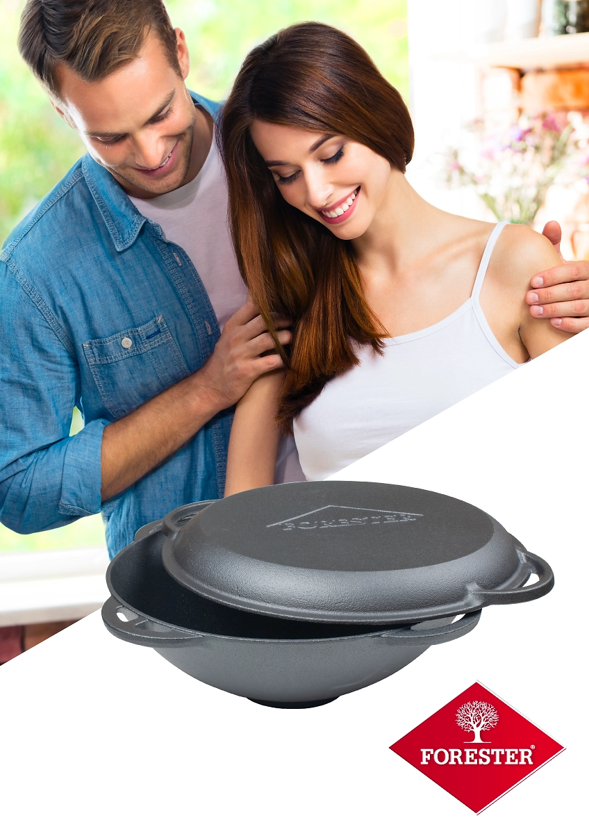 Казан с крышкой-сковородой чугунный Forester CI-01V 35x35 см