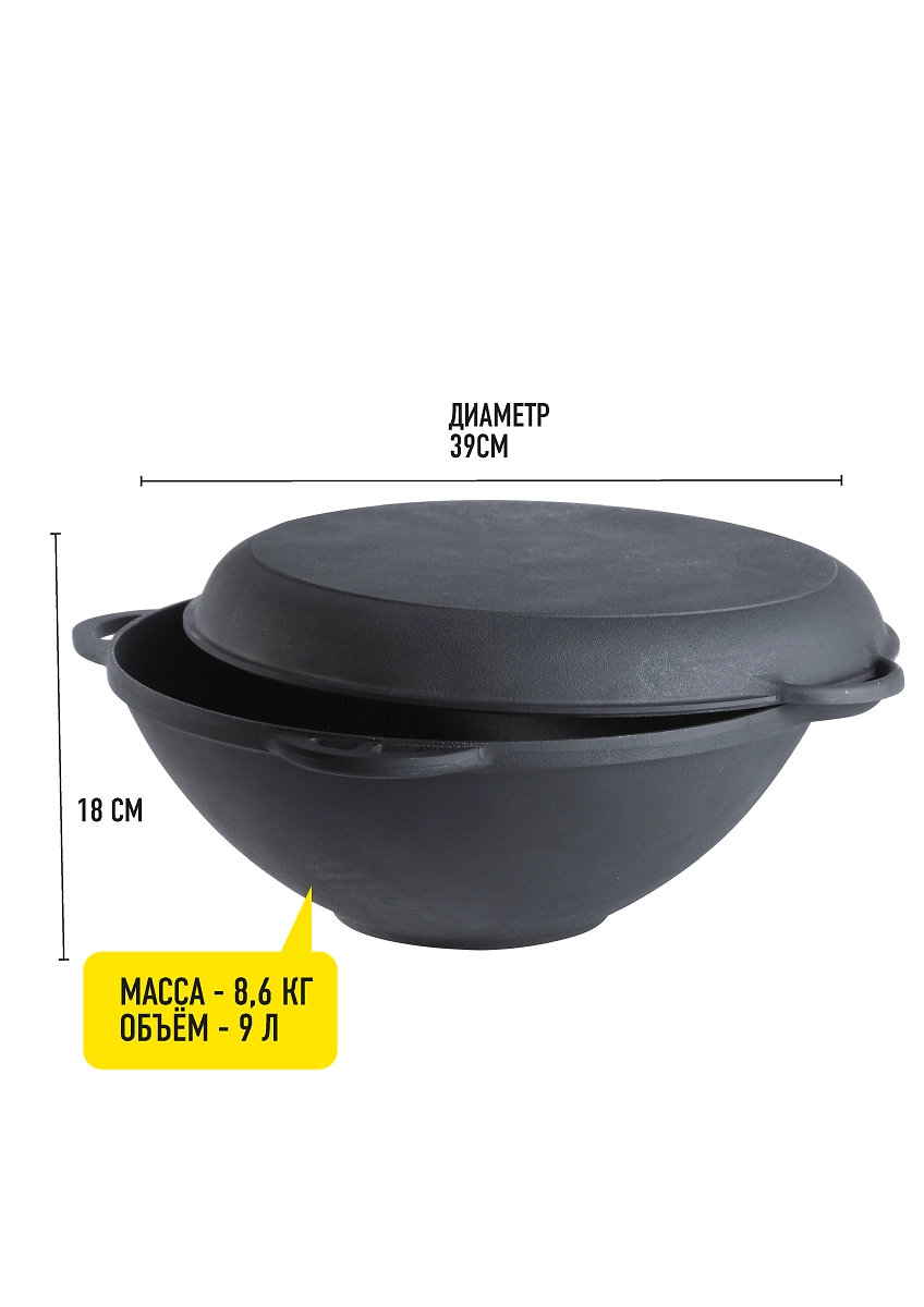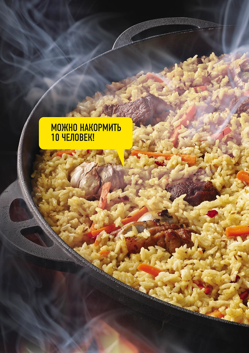 - Чугун хорошо держит и плохо отдает тепло, благодаря чему казан прогревается равномерно и долго остается горячим.