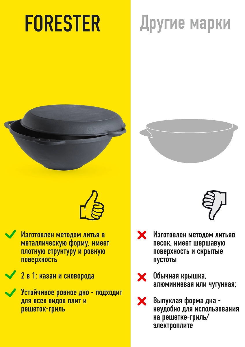 Казан Forester CI-01 предназначен для приготовления пищи на мангале, гриле, газовой и электрической плите.