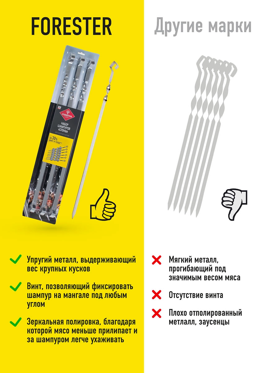 Набор шампуров для мангала Forester 55 см 6 штук