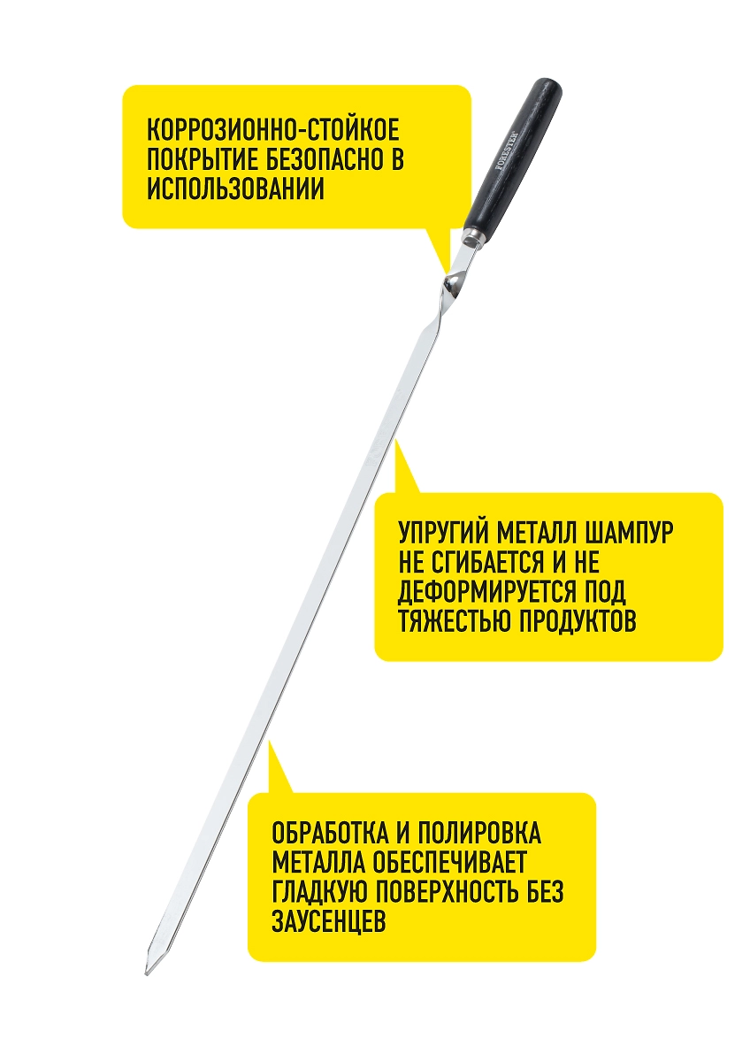 Набор больших шампуров Forester RZ-60WB предназначен для приготовления мяса, ребрышек, окороков и бургеров на открытом огне.