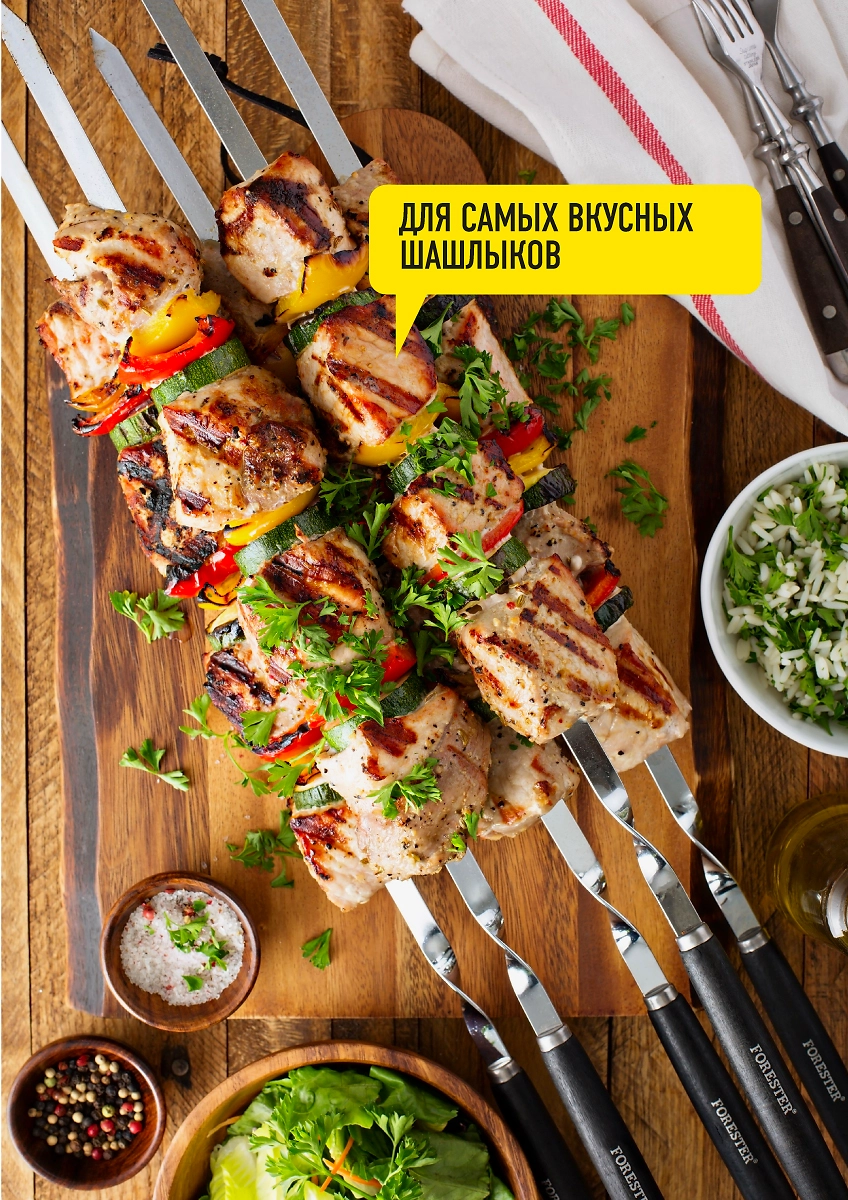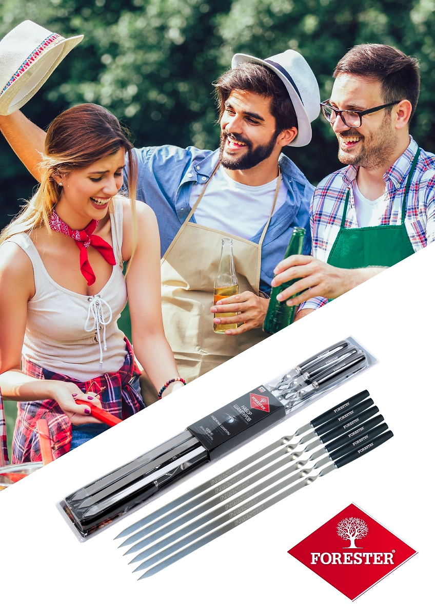 Набор шампуров стальных для мангала Forester 61 см 6 шт