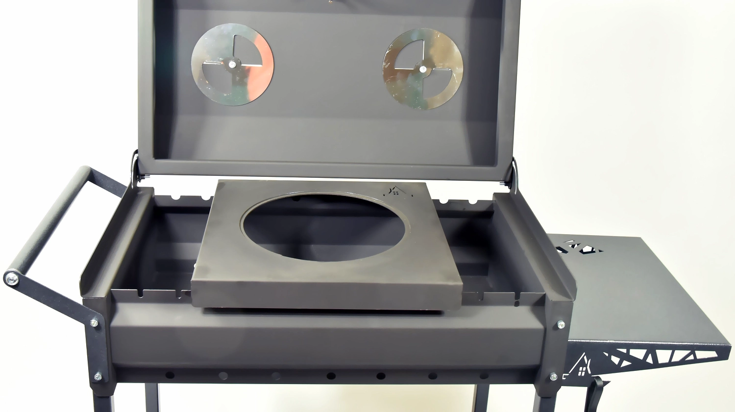 Подставка под казан для мангала от производителя Дачный Сезон. Предназначена для установки на мангал шириной до 36 см и приготовления в казане. Изготовлено из стали 2 мм. Панель для чайника, сковородки, кастрюли. Диаметр отверстия подставки 260 мм. Данная подставка под казан подходит для всех моделей из нашего ассортимента.