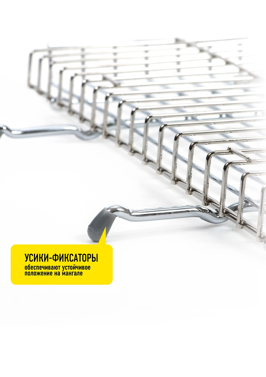 Решетка-гриль для барбекю выполнена из пищевой стали с коррозиестойким покрытием. Благодаря съемной ручке, она занимает минимум места в сложенном виде, комфортна для перевозки.
