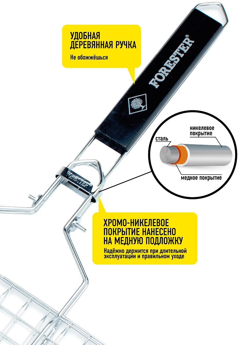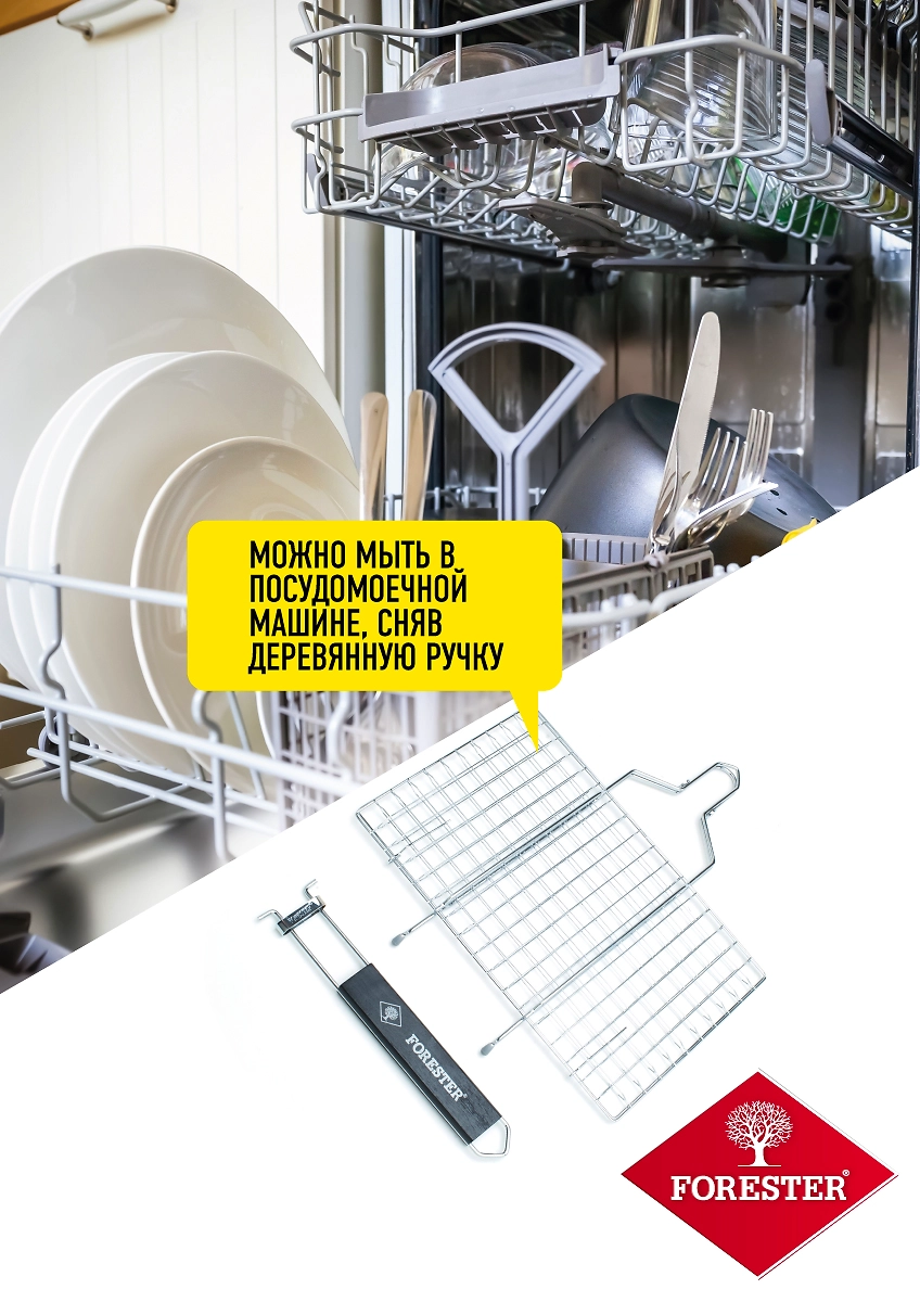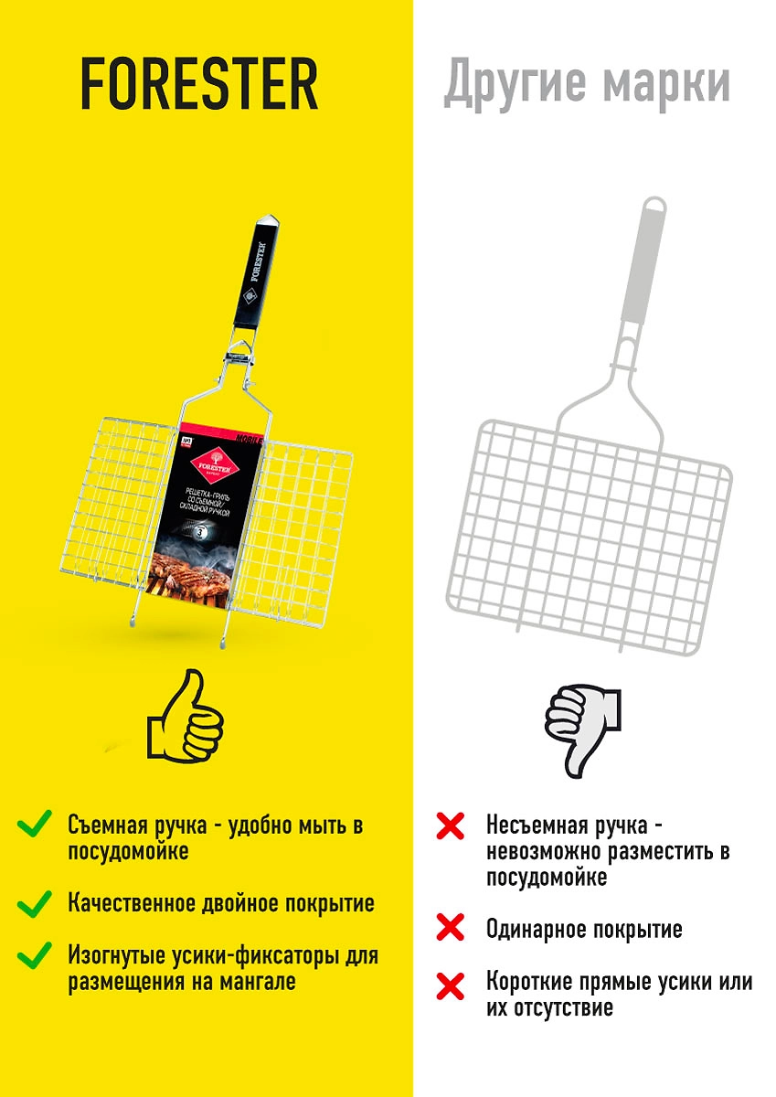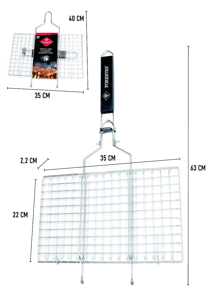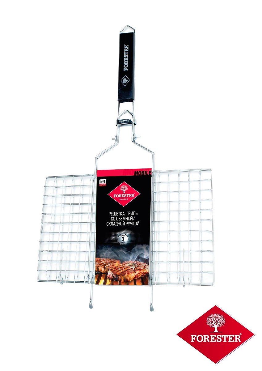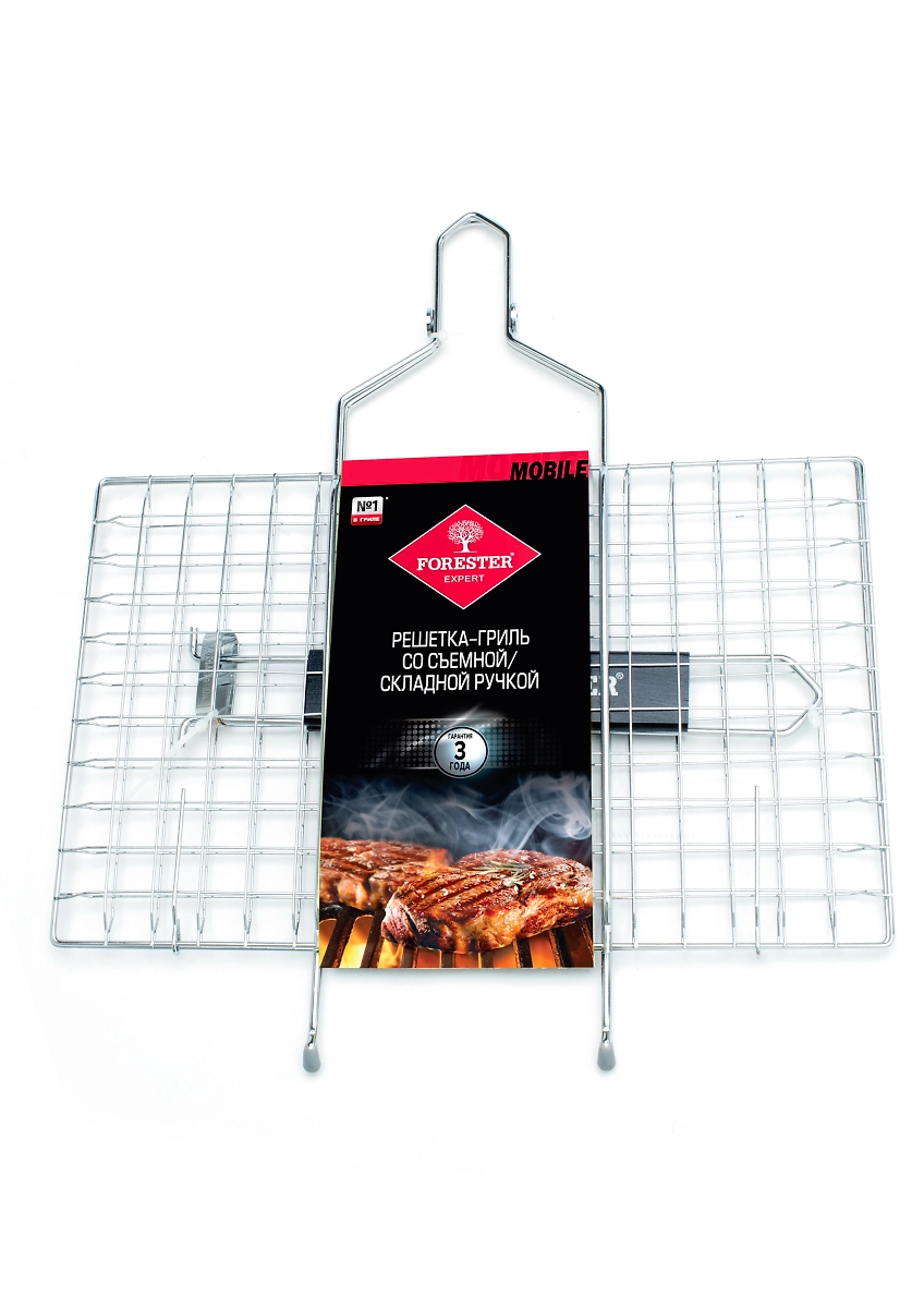 Решетка-гриль со съемной ручкой Forester Mobile BQ-S01М, 22х35 см удобна как в процессе приготовления пищи на углях или дровах, так и в своем обслуживании.