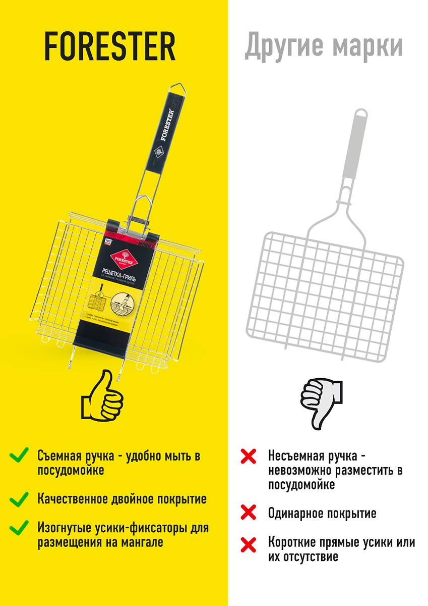 Решетка стальная для гриля универсальная Forester Mobile BQ-S03M 24х31 см