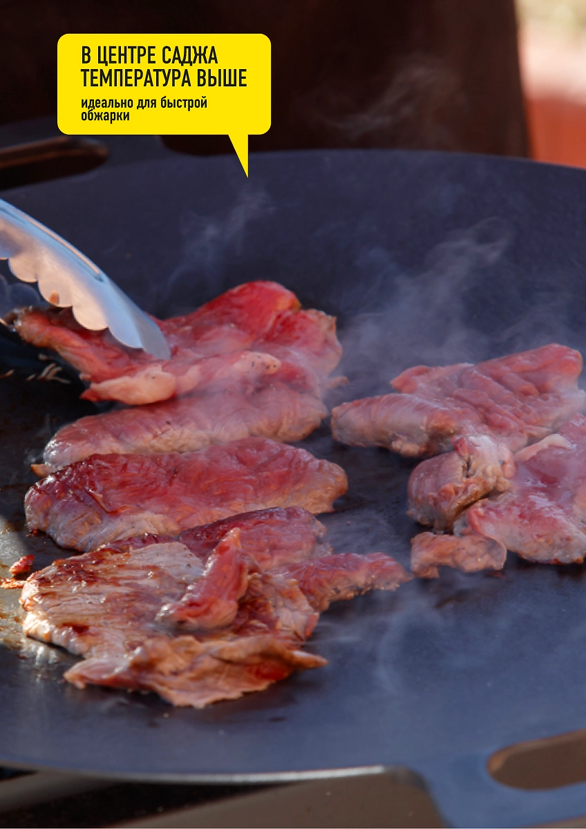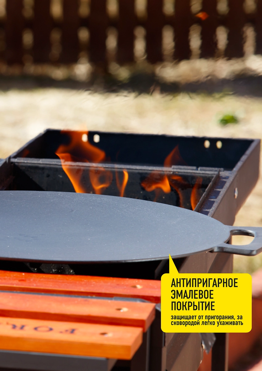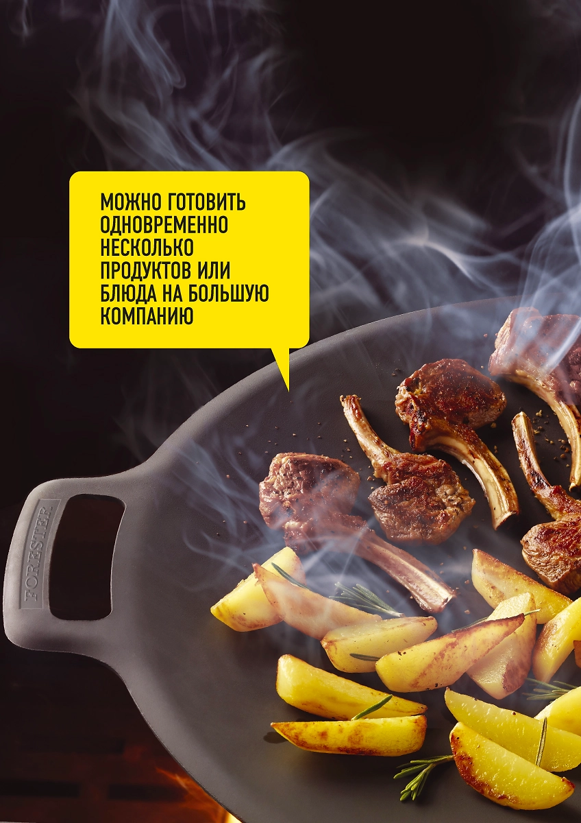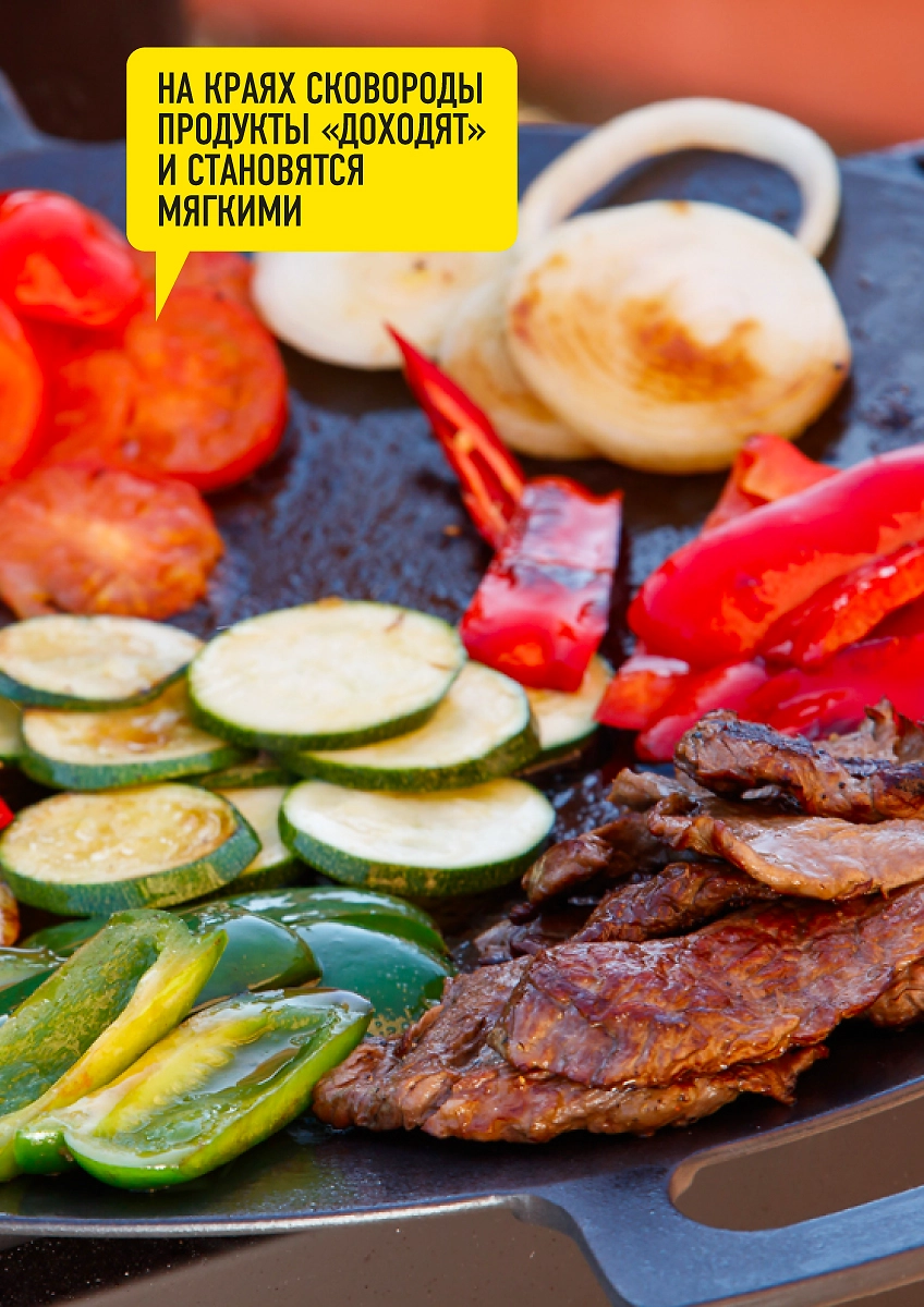 Чугунная сковорода-гриль предназначена для жарки идеальных стейков из мяса, птицы, рыбы и овощей-гриль на мангале / гриле. Керамическое антипригарное покрытие не дает продуктам прилипать.