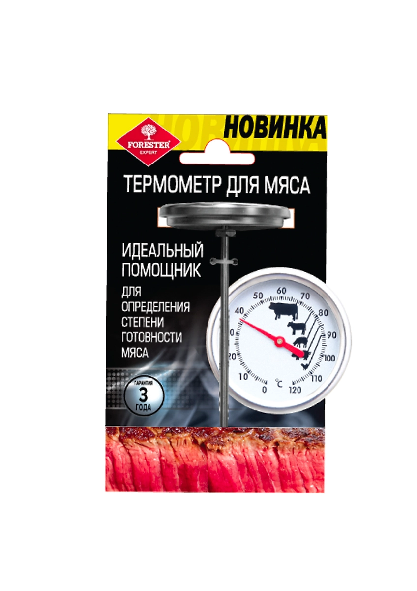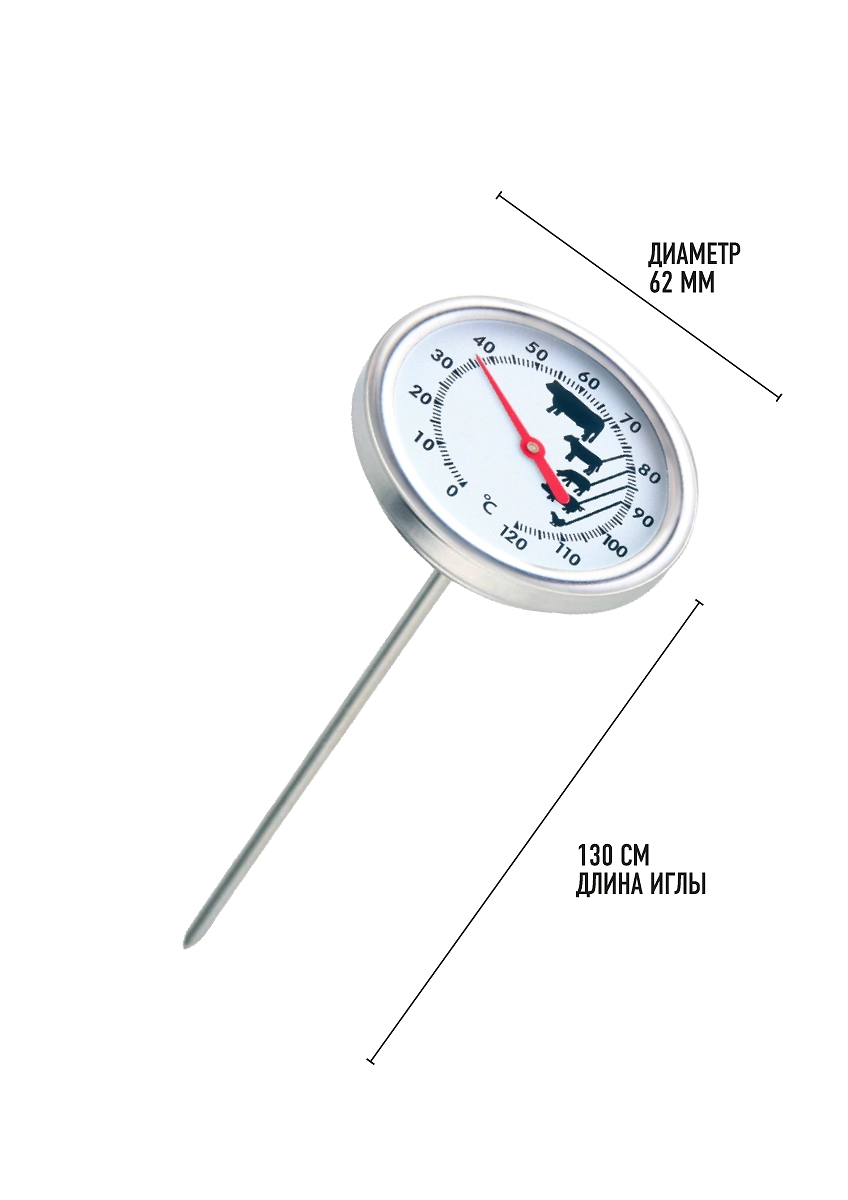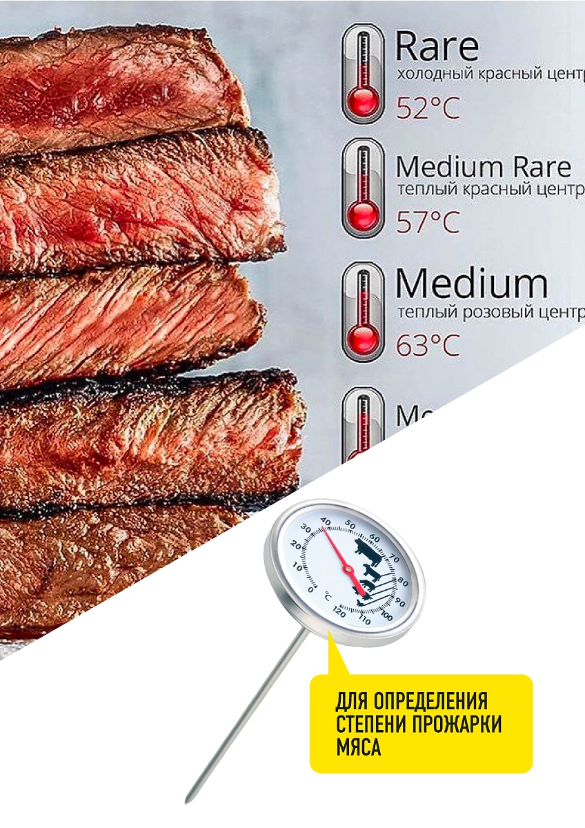 Термометр предназначен для определения степени готовности мяса.
