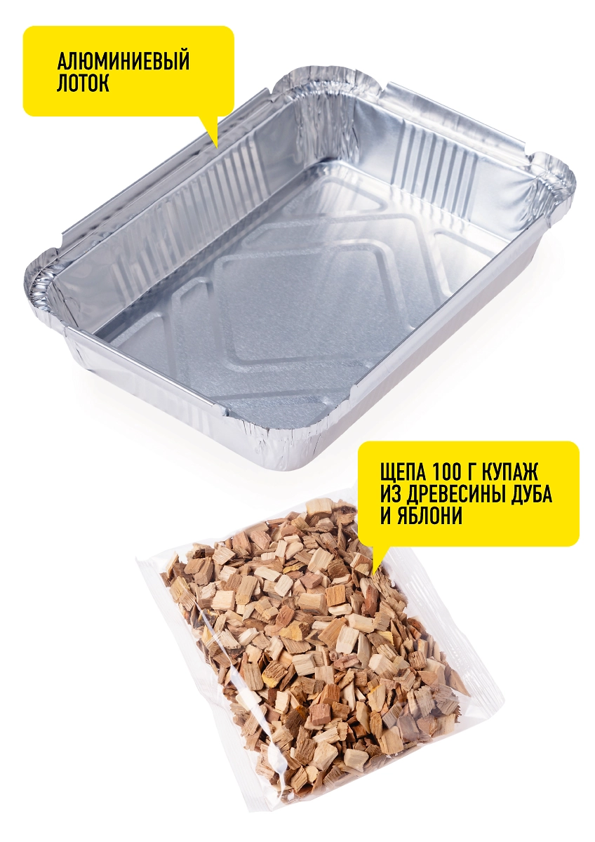 - Снимите картонную обечайку, достаньте целлофановый пакет с щепой из лотка, аккуратно вскройте