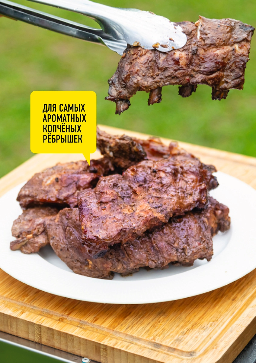 - Придает аромат мясу, приготовляемому на гриле или мангале с крышкой, а также в духовке или коптильне
