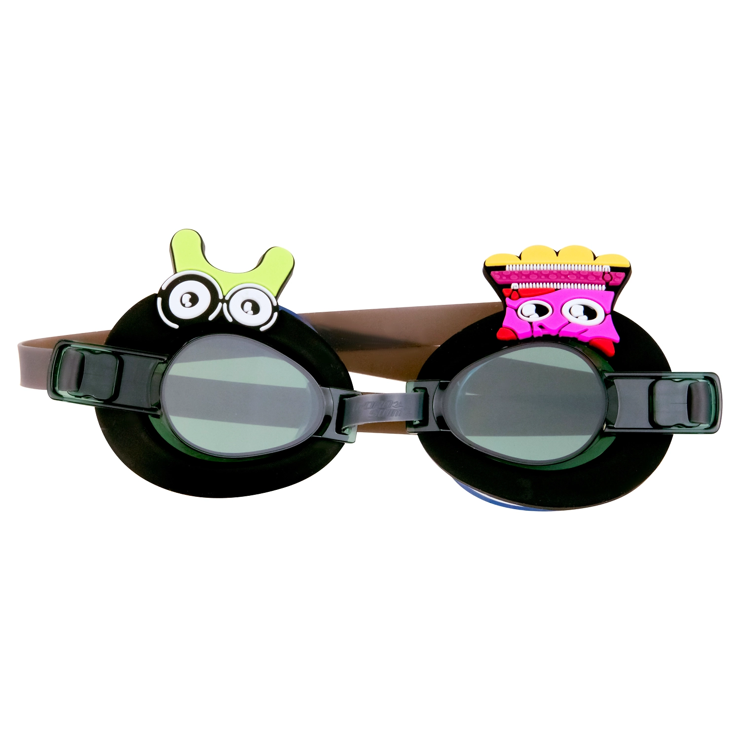 Детски очки для плавания с линзами из пластика. УФ-защитное покрытие. Регулируемая носовая перемычка. Регулируемый головной ремень из силикона.