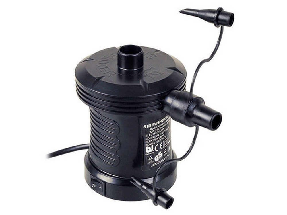 Насос электрический Bestway Sidewinder AC Air Pump. Подходит для надувания и спуска надувных бассейнов, матрасов и кроватей, надувных игрушек и т.д. Поставляется с тремя разными насадками для всех распространенных размеров.