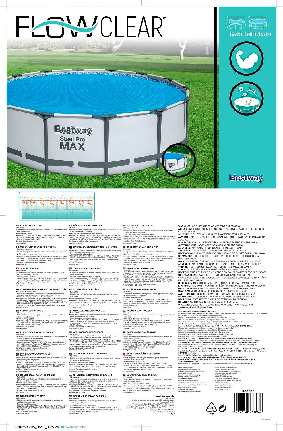 Покрывало Bestway для бассейна солнечное для D457