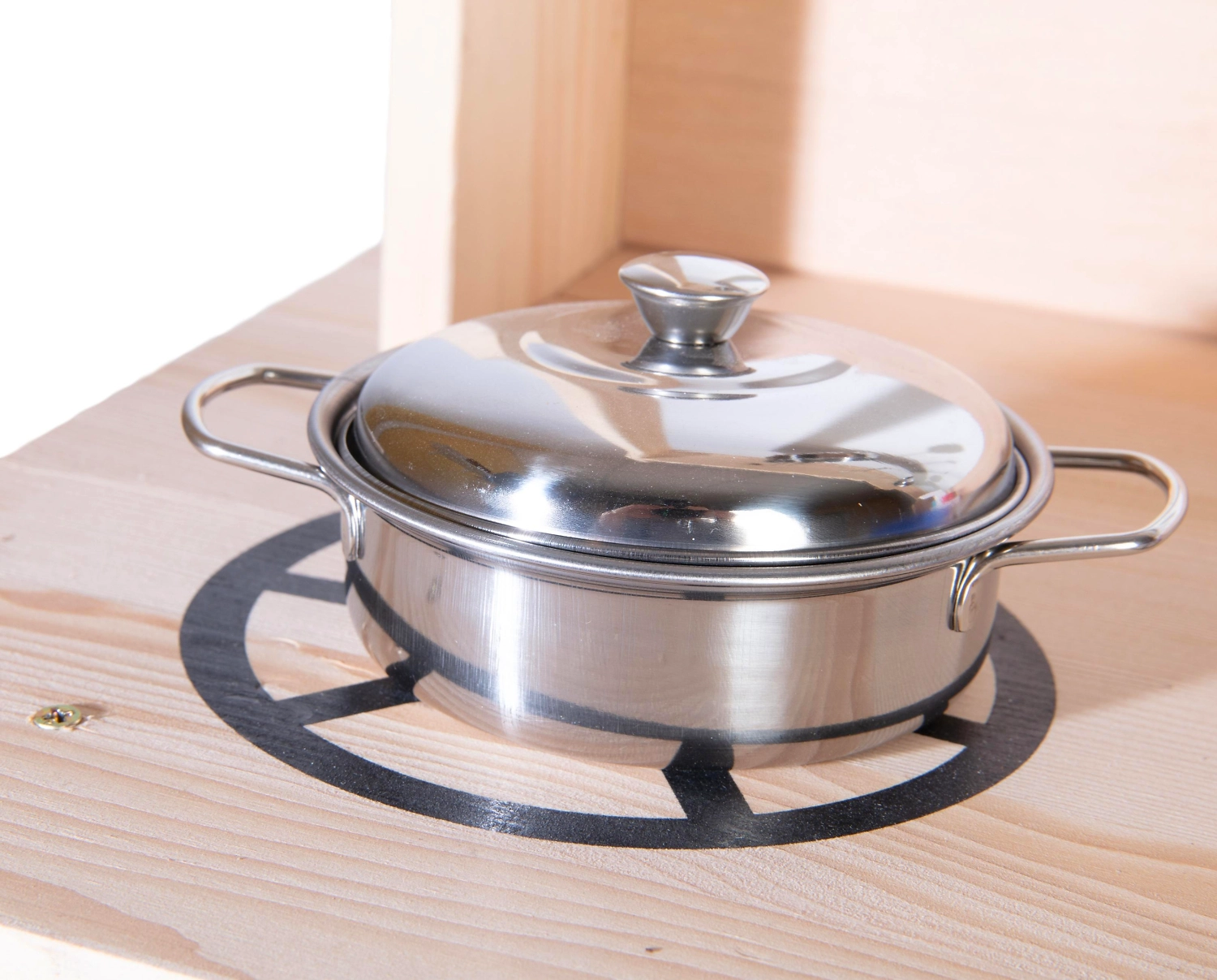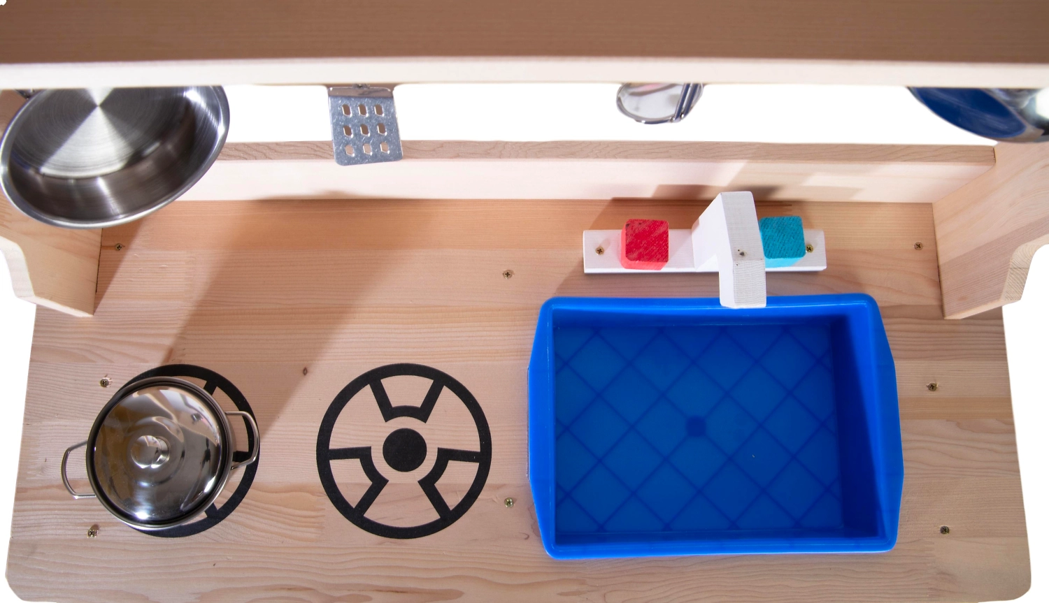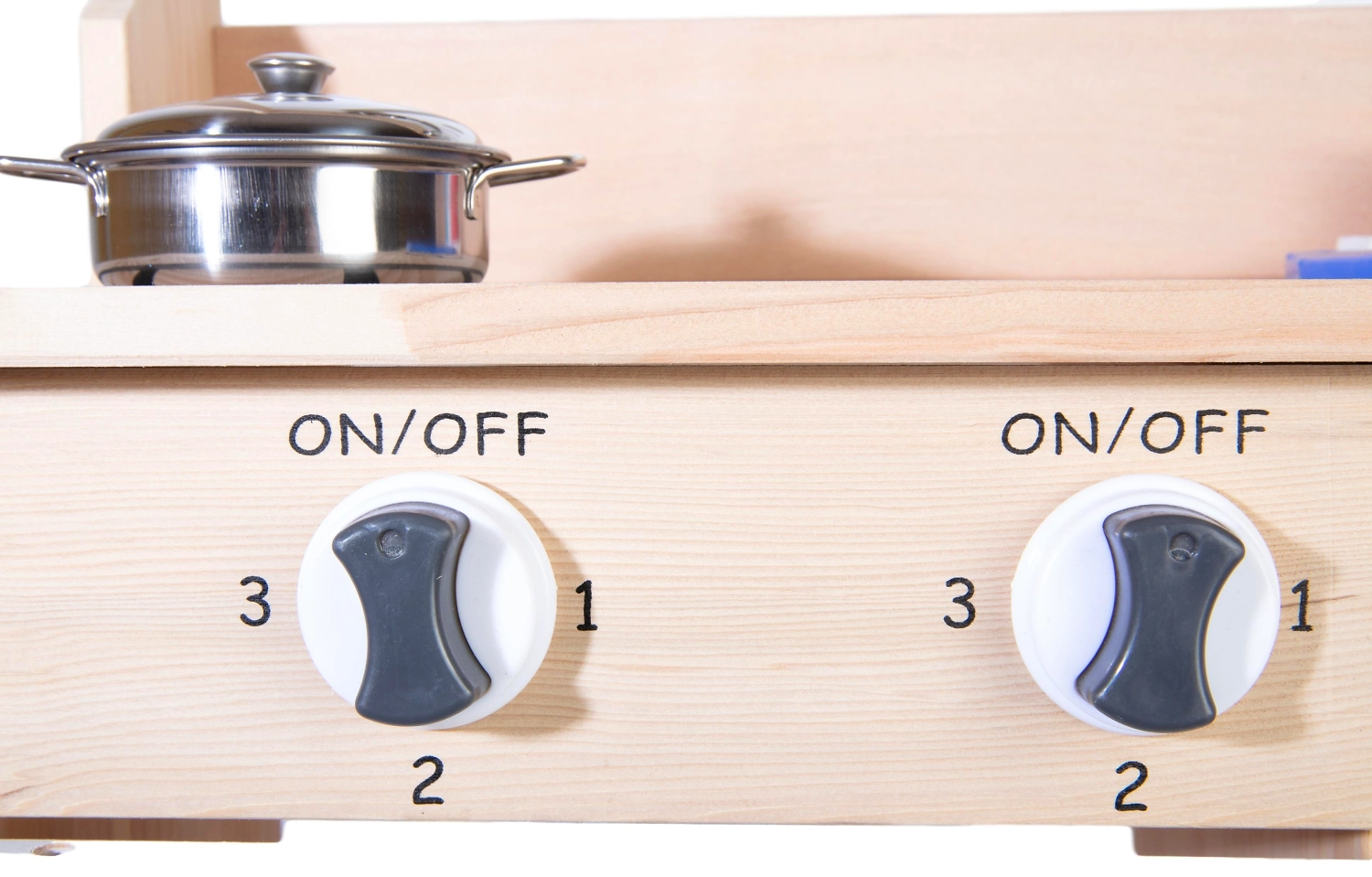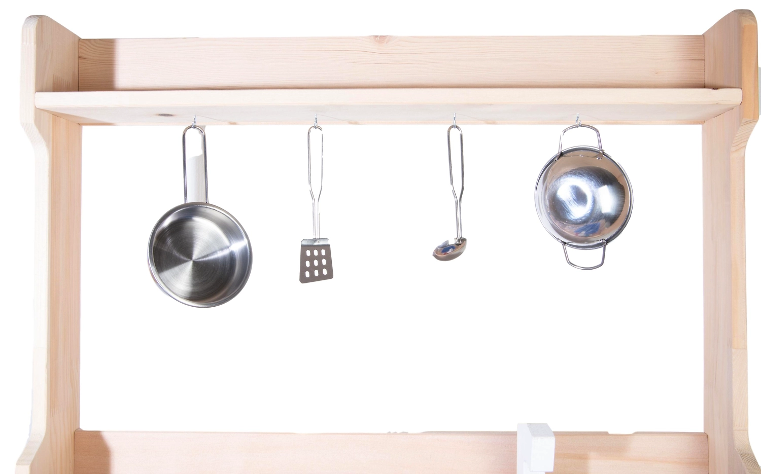 Кухня имеет устойчивый и безопасный каркас из дерева, дополнена аксессуарами для интересной игры.