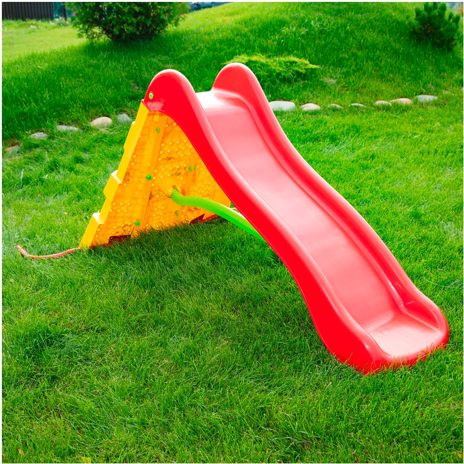 - Горка выполнена из прочного, стойкого к износу и повреждениям пластика.