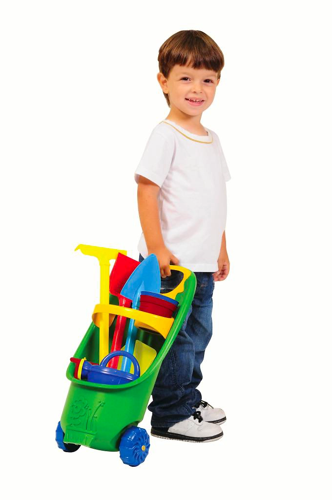 Лето - время для игр на свежем воздухе, копания песка на пляже и помощи взрослым в саду. А перевозить свои игрушки удобнее всего в специальной садовой тележке.
