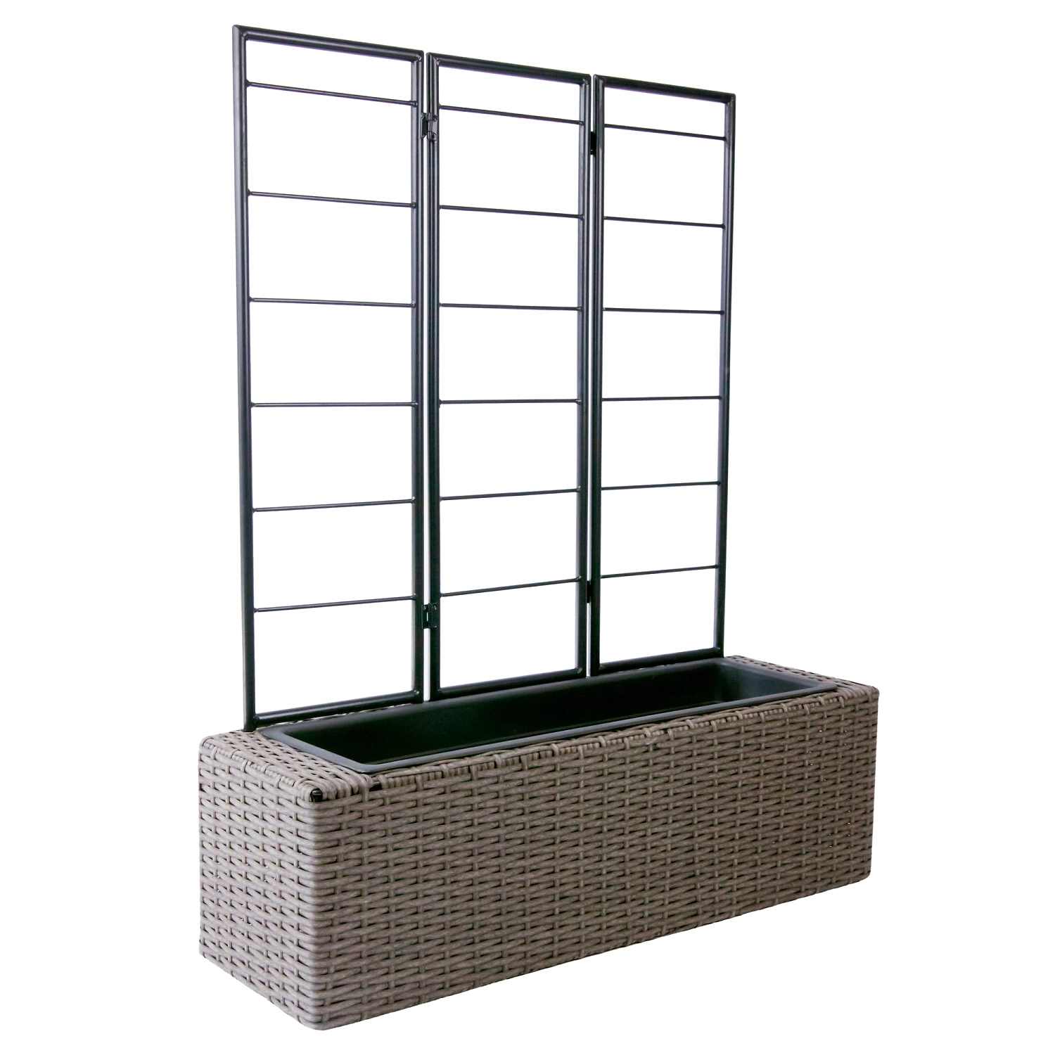 Этот балконный ящик с ротанговым плетением идеально подойдет для озеленения балкона или придомовой территории. Конструктивные особенности модели позволяют выращивать вьющиеся растения и лианы. Изделие выполнено в сером цвете.