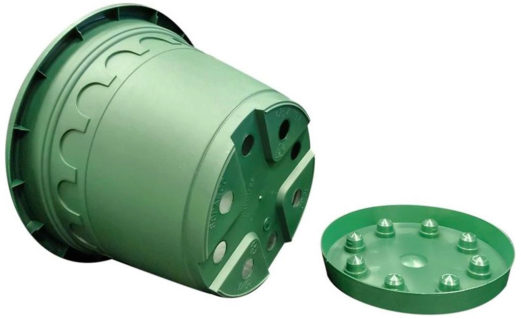 Сочетание классического итальянского дизайна и матового покрытия визуально придает эффект ощущение керамического горшка. Форма дна и достаточное количество дренажных отверстий позволяют плотно защелкивать поддоны (в комплекте), при этом оставляя дополнительные отверстия для стока лишней воды при переливах.