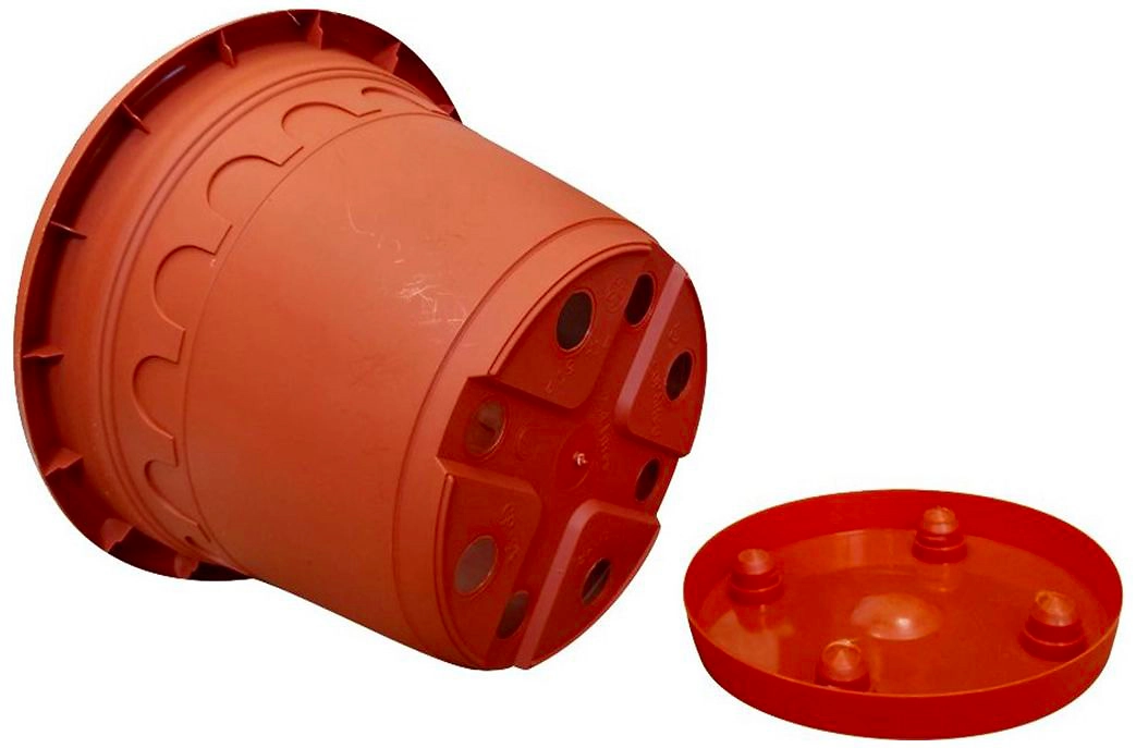 Сочетание классического итальянского дизайна и матового покрытия визуально придает эффект ощущение керамического горшка. Форма дна и достаточное количество дренажных отверстий позволяют плотно защелкивать поддоны (в комплекте), при этом оставляя дополнительные отверстия для стока лишней воды при переливах.