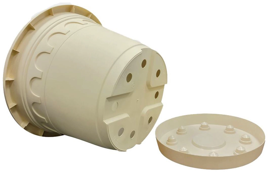 Сочетание классического итальянского дизайна и матового покрытия визуально придает эффект ощущение керамического горшка. Форма дна и достаточное количество дренажных отверстий позволяют плотно защелкивать поддоны (в комплекте), при этом оставляя дополнительные отверстия для стока лишней воды при переливах.