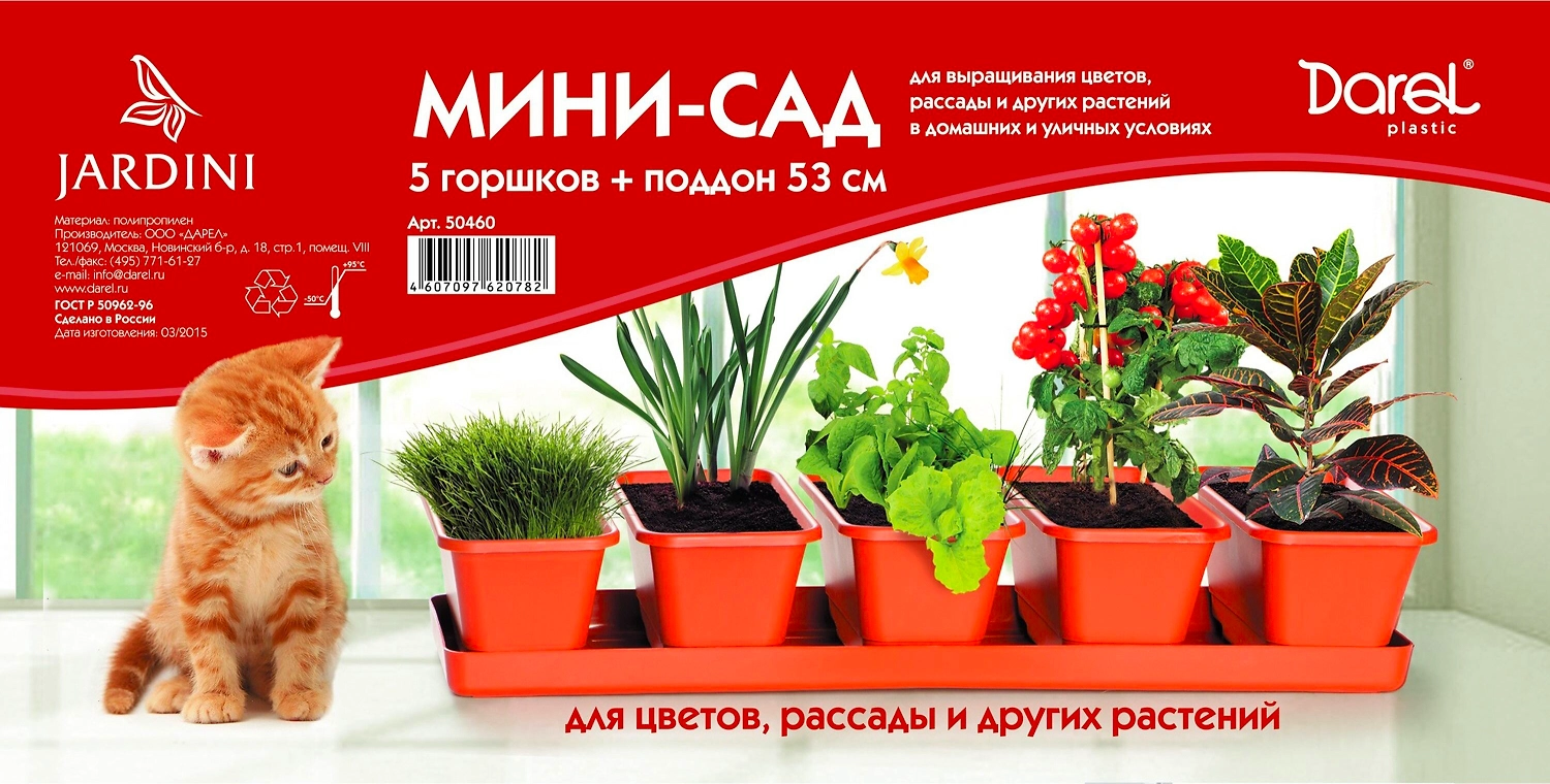 МИНИ-САД JARDINI DAREL plastic 5 горшков+поддон 53 см, для выращивания рассады и других растений в домашних и уличных условиях.