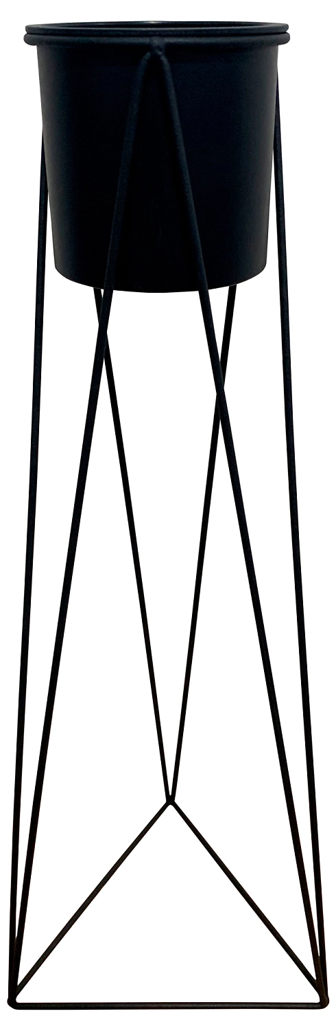 Кашпо пластиковое черное на металлической подставке H55 см