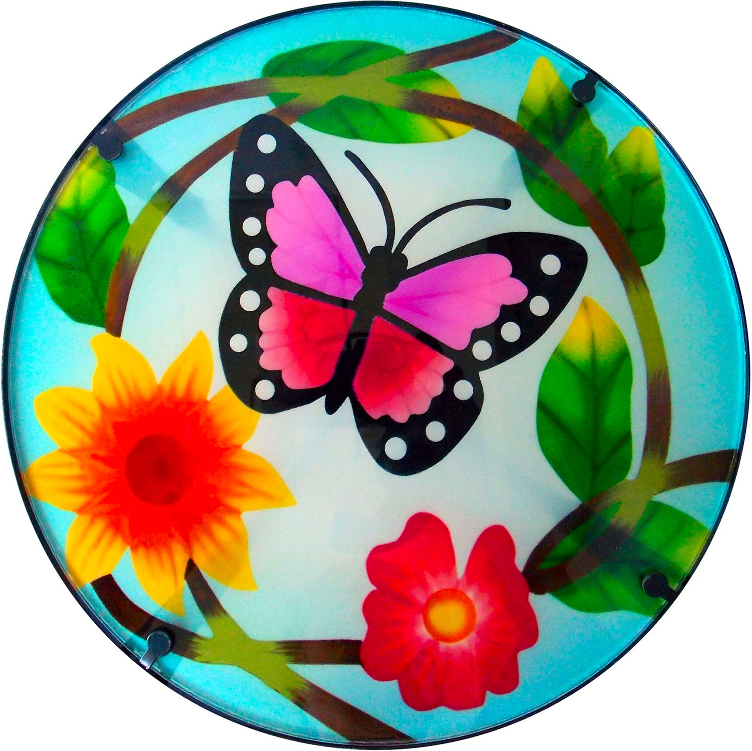 Декоративная подставка для цветов Бабочка изготовлена из металла и плоского стекла. Оснащена складными ножками с пластиковыми наконечниками.