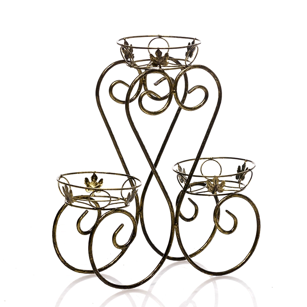Подставка Лоза предназначена для удобного, компактного и красивого размещения трех цветочных горшков. Она позволяет декорировать интерьер жилого или офисного помещения живыми цветами, упрощает уход за комнатными растениями. Подставка золотисто-черного цвета будет одинаково хорошо смотреться на балконе, веранде или в комнате, на подоконнике, полке или полу. Оригинальная форма подставки станет прекрасным дополнением дизайна.