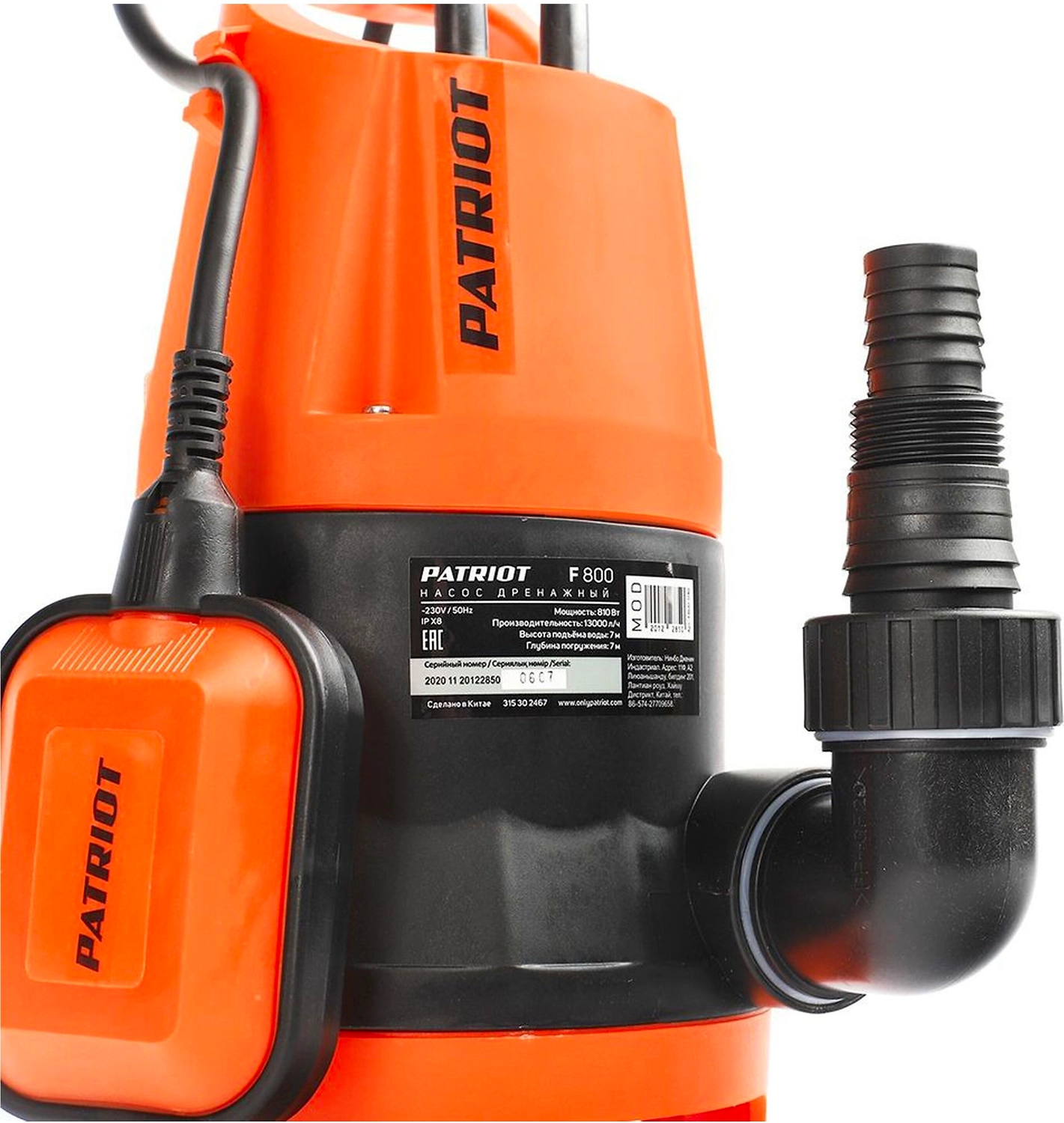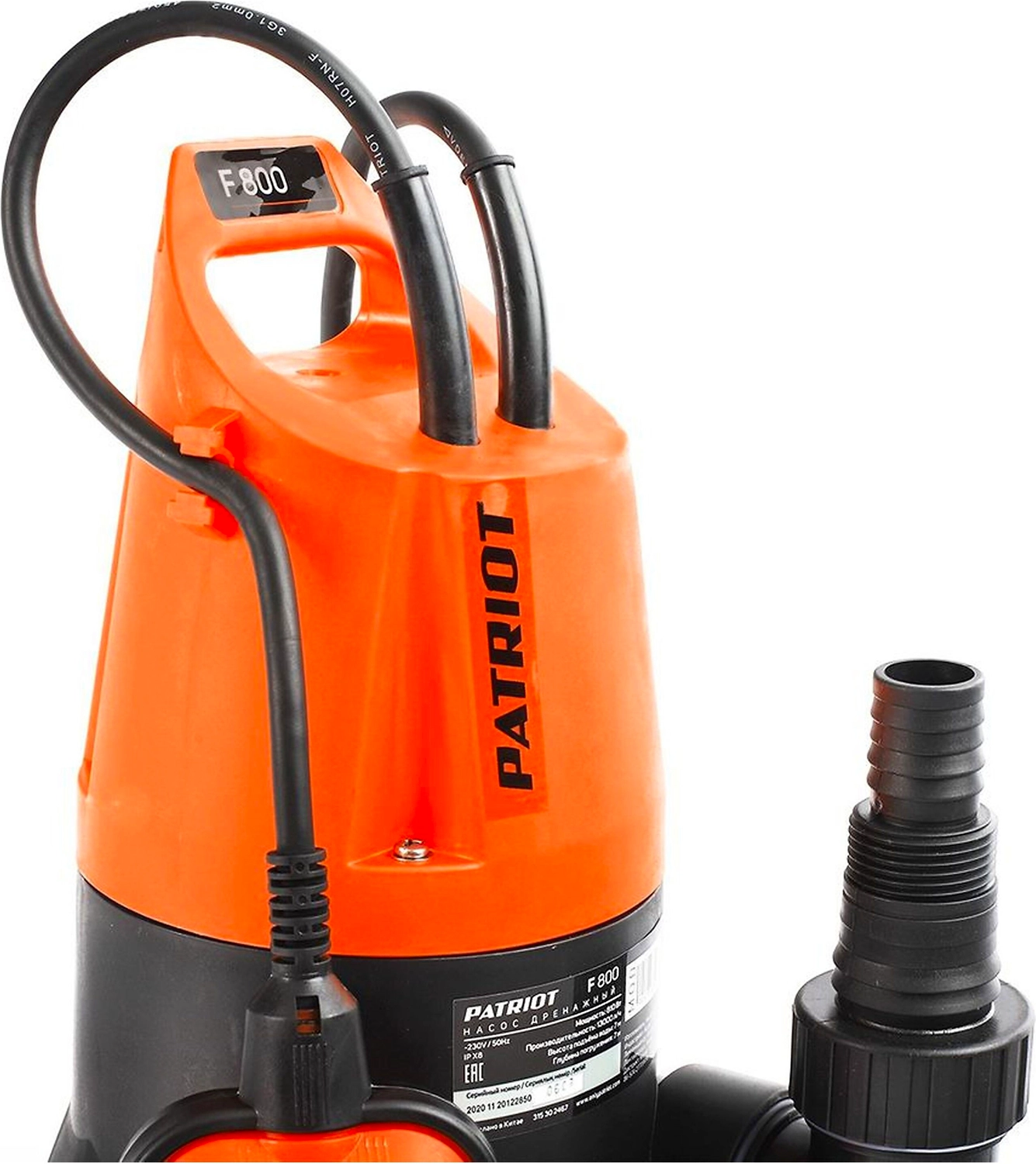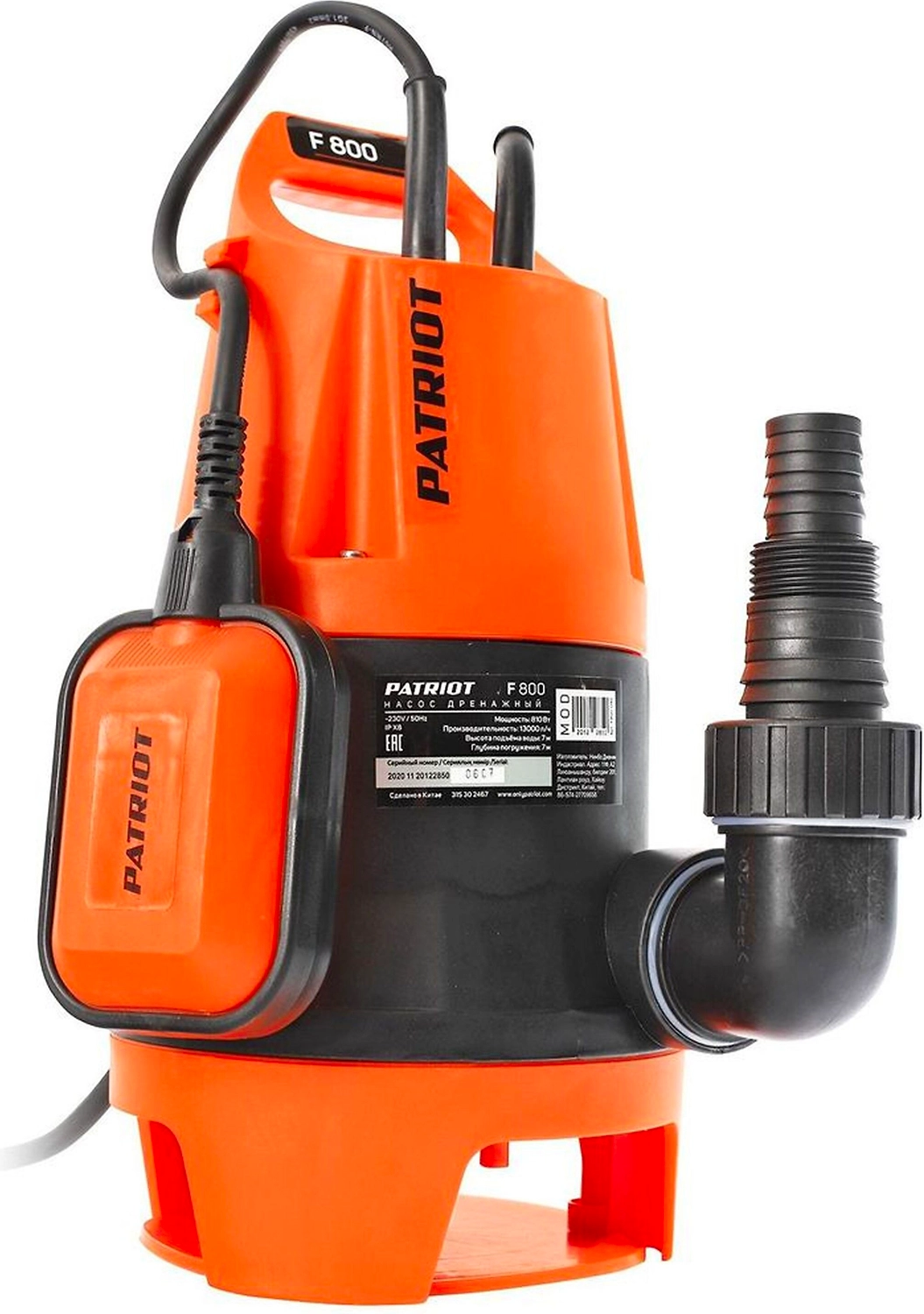 Погружной дренажный насос PATRIOT F 800 - надежное устройство для откачивания воды из бассейнов, подвалов, открытых водоемов, подачи воды для полива сада.